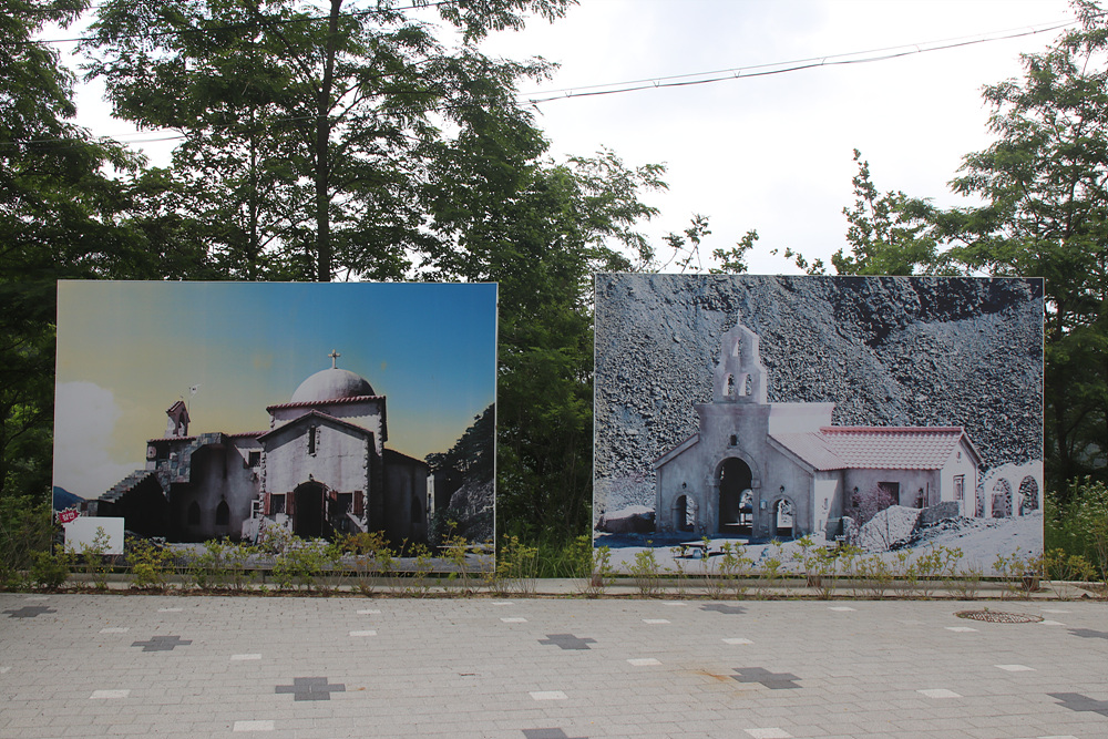 지금은 철거되고 없는 드라마 속의 건물은 이렇게 대형 벽화로 설치되어 이곳에서 촬영을 하면