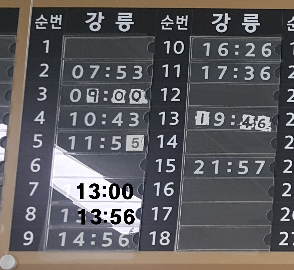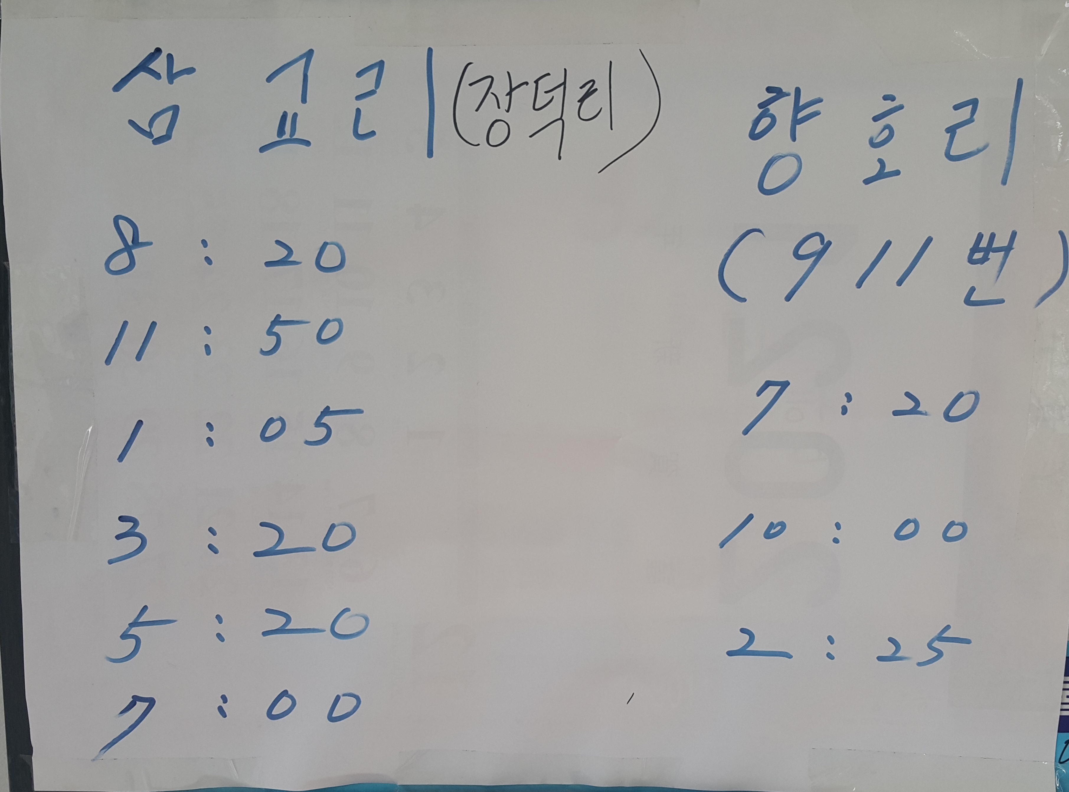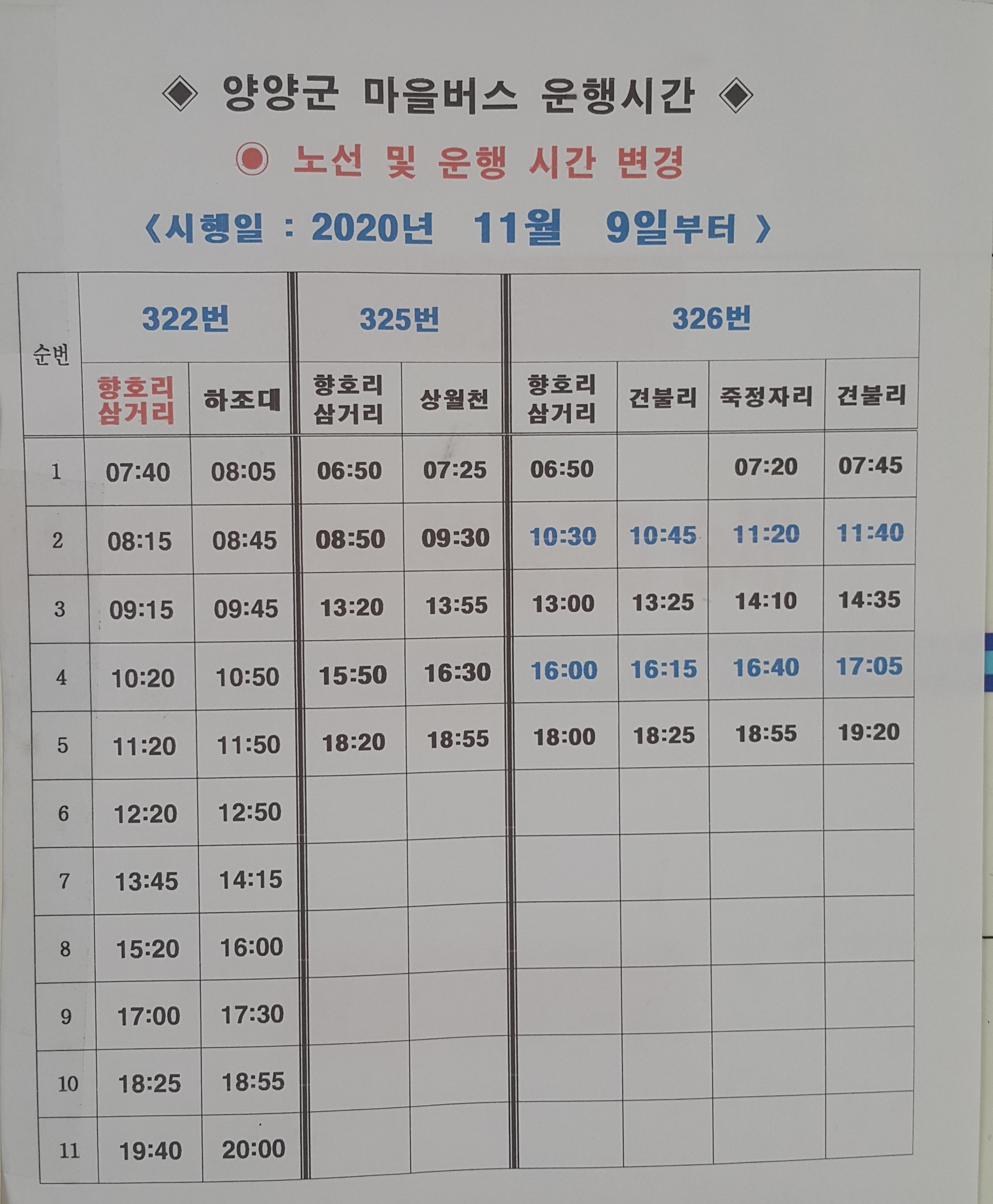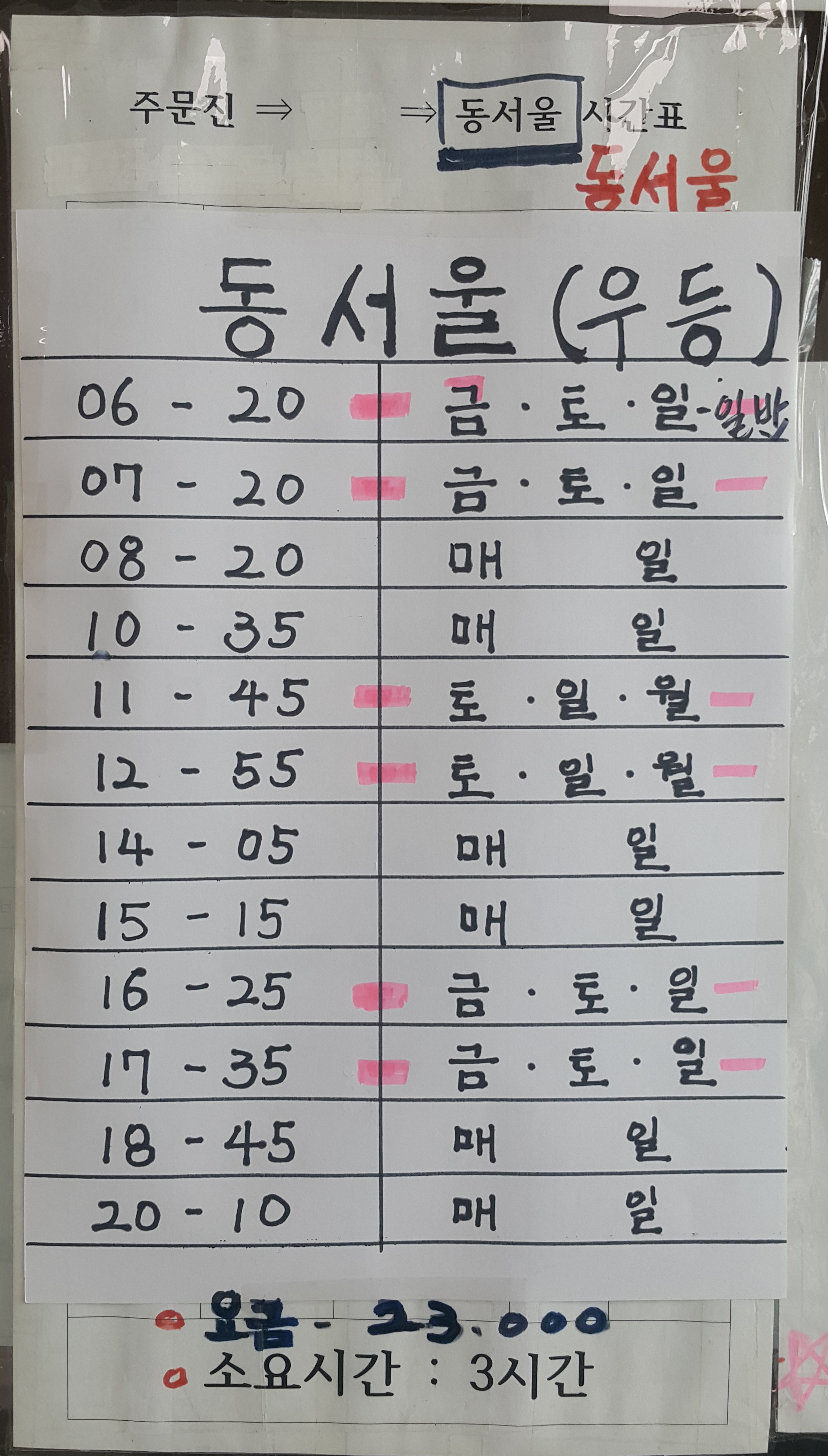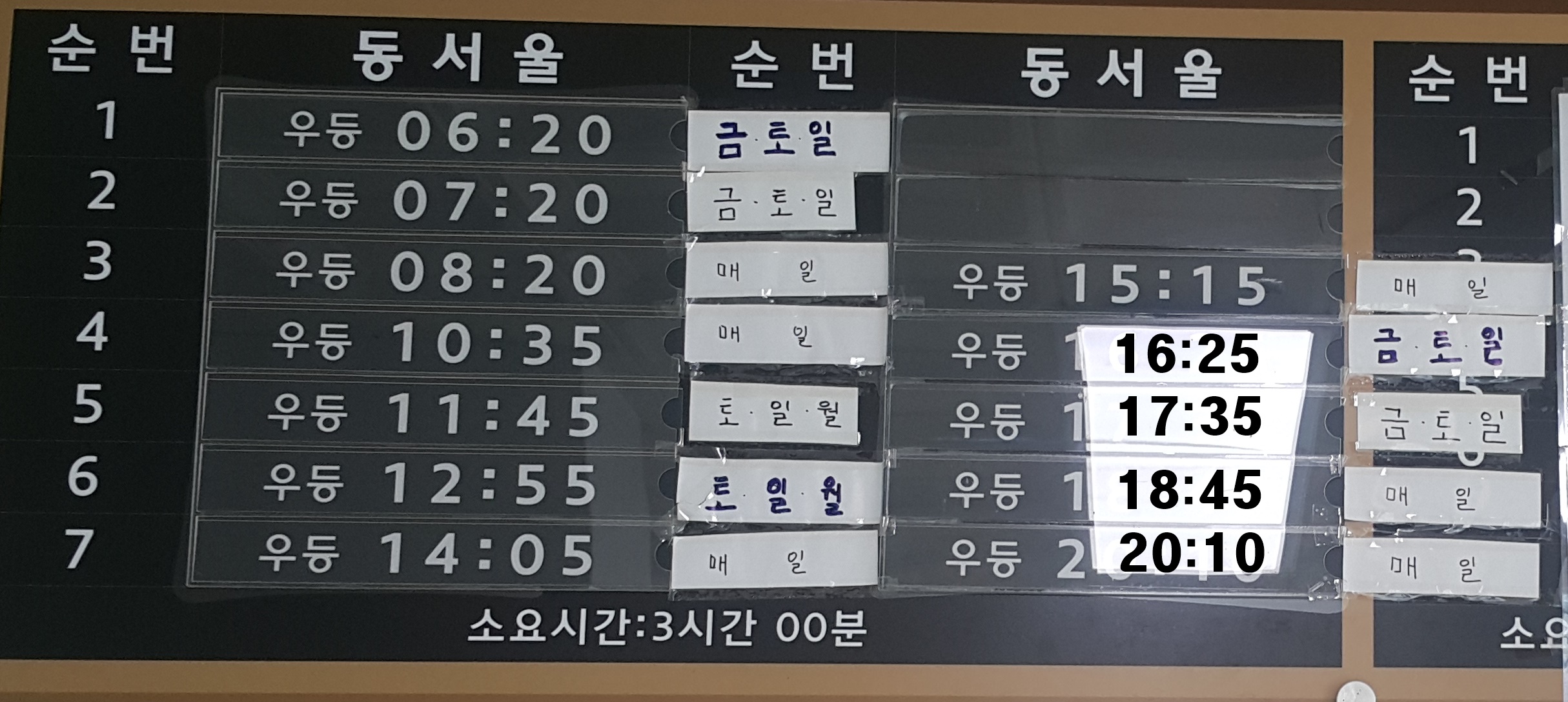 속초 방면 시간표 남애, 인구, 하조대, 양양, 손양, 낙산, 설악산 입구