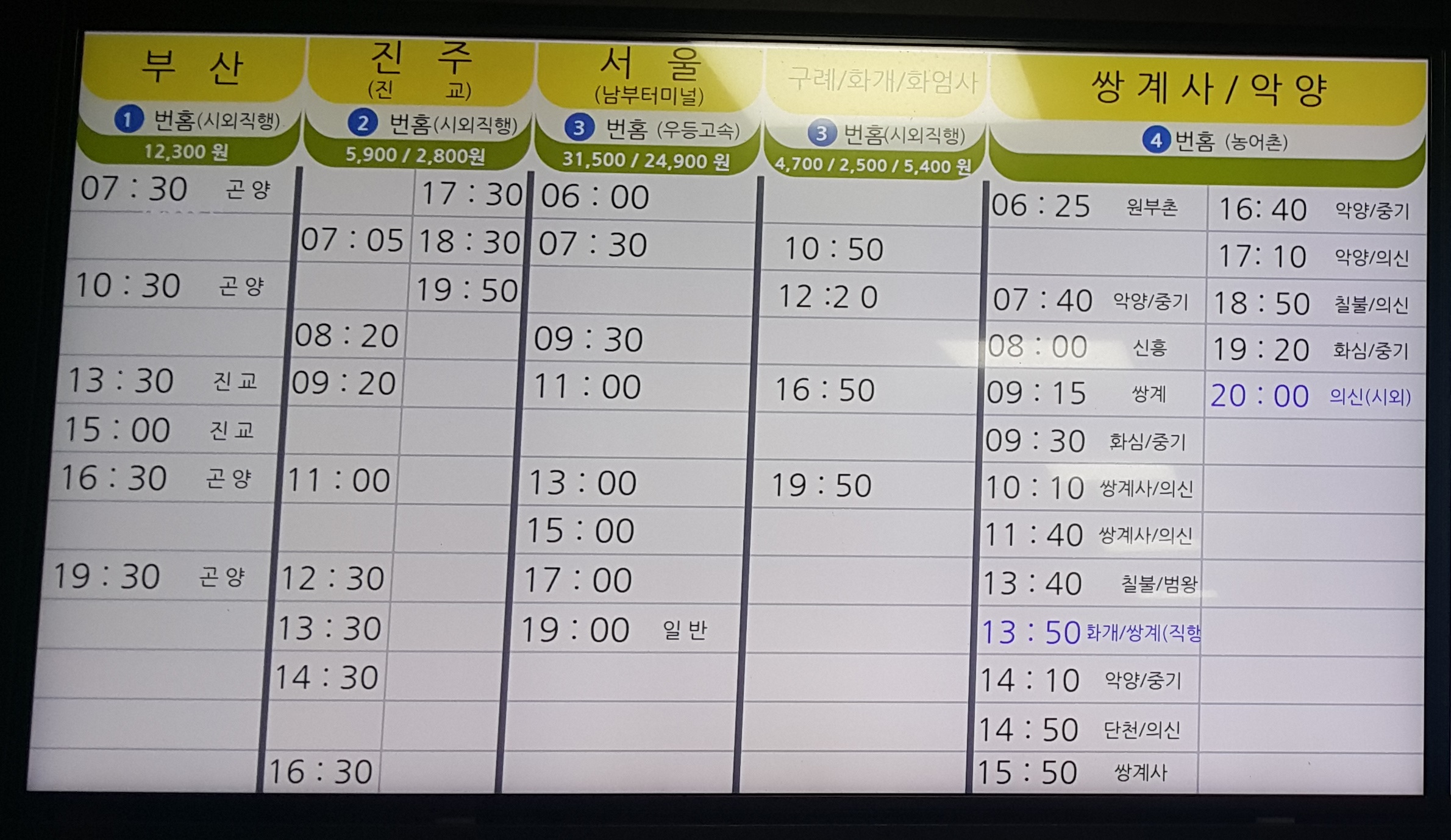 하동 출발 청학동, 북천, 양보, 옥종 방면 4번 홈