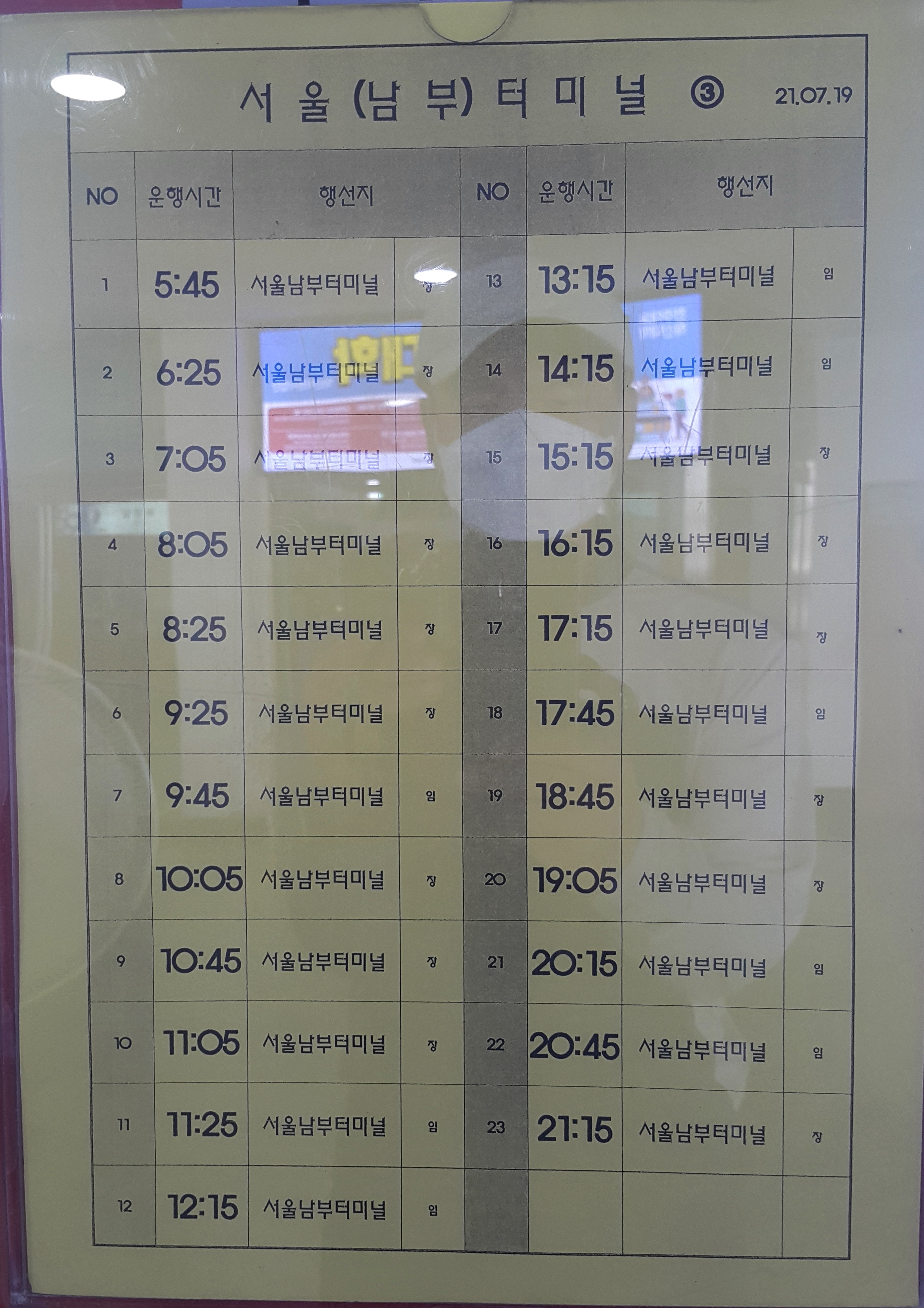 전주시외버스터미널 출발 서울 남부터미널 방면.