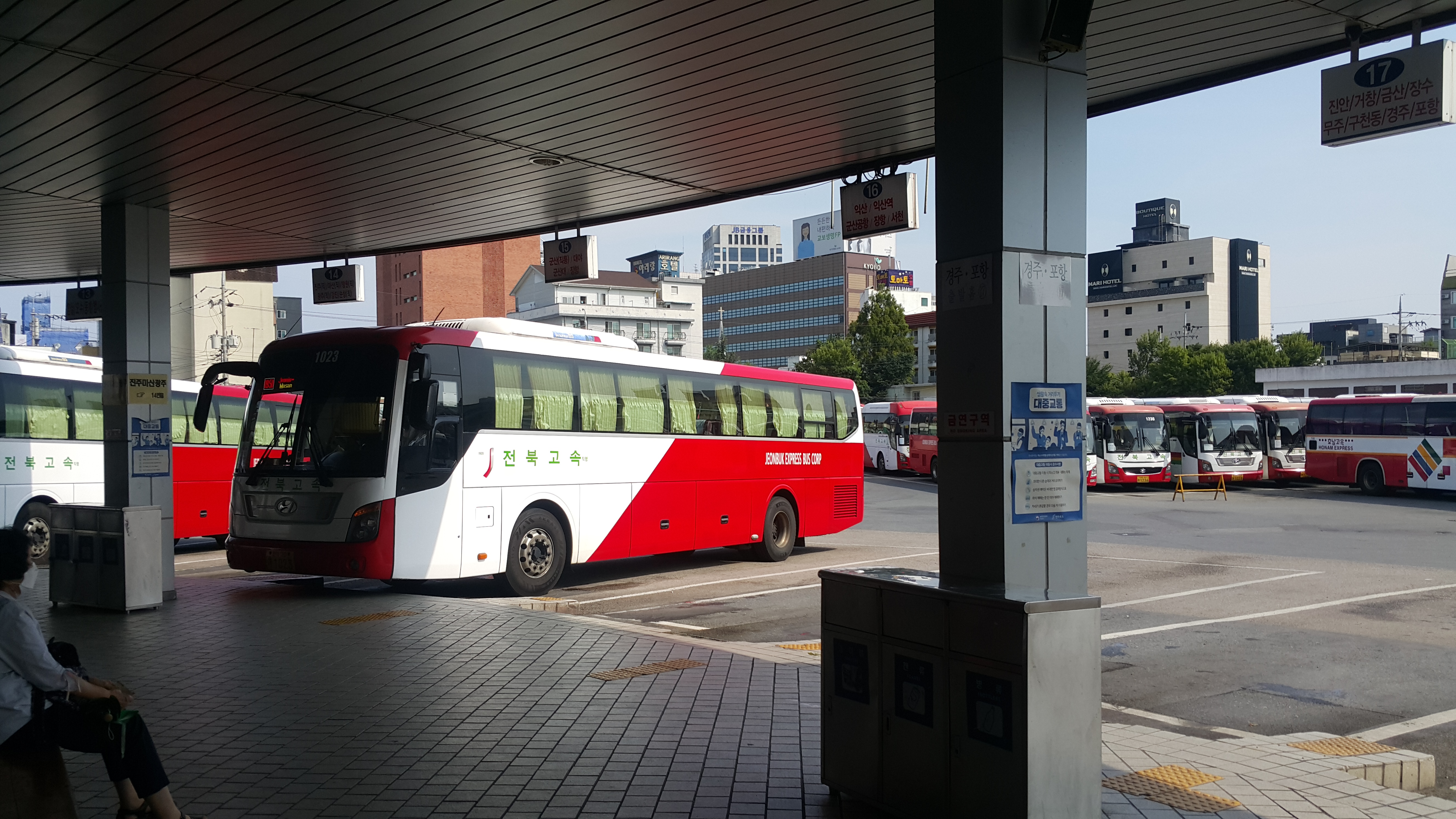 전주시외버스터미널 출발 구미, 김해, 양산, 대구서부, 서부산 방면.