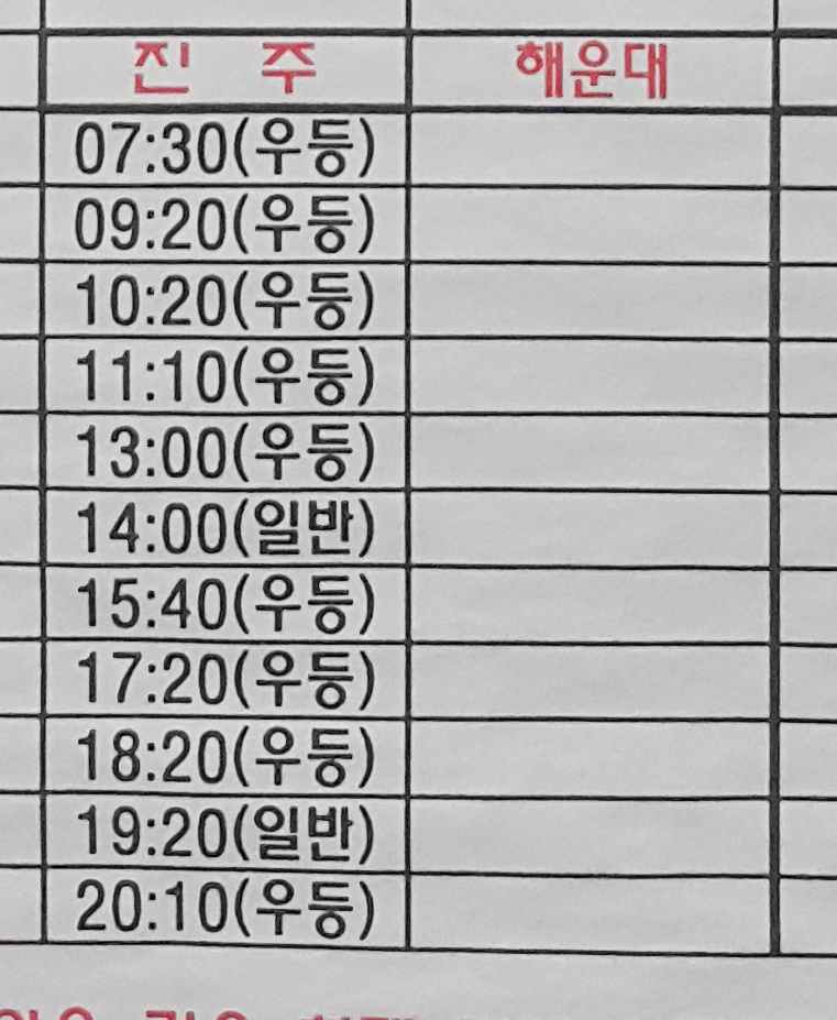 양산시외버스터미널 출발 진주, 해운대 방면.