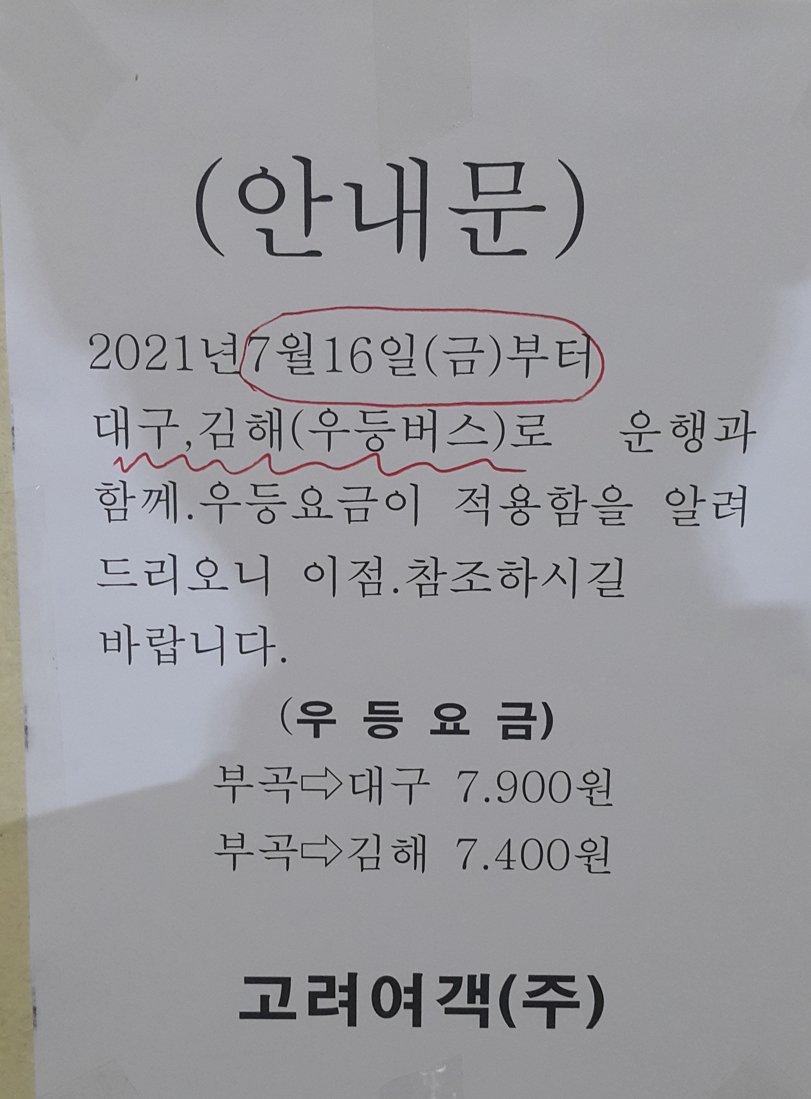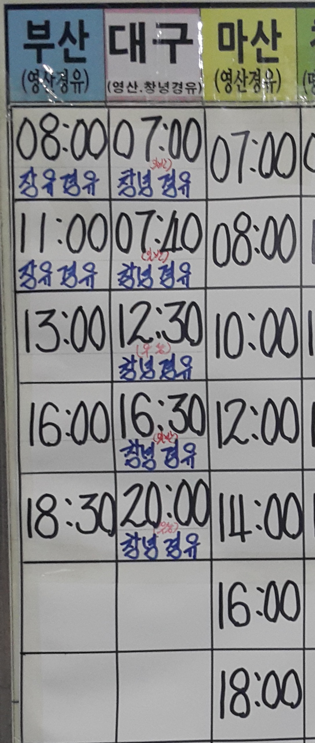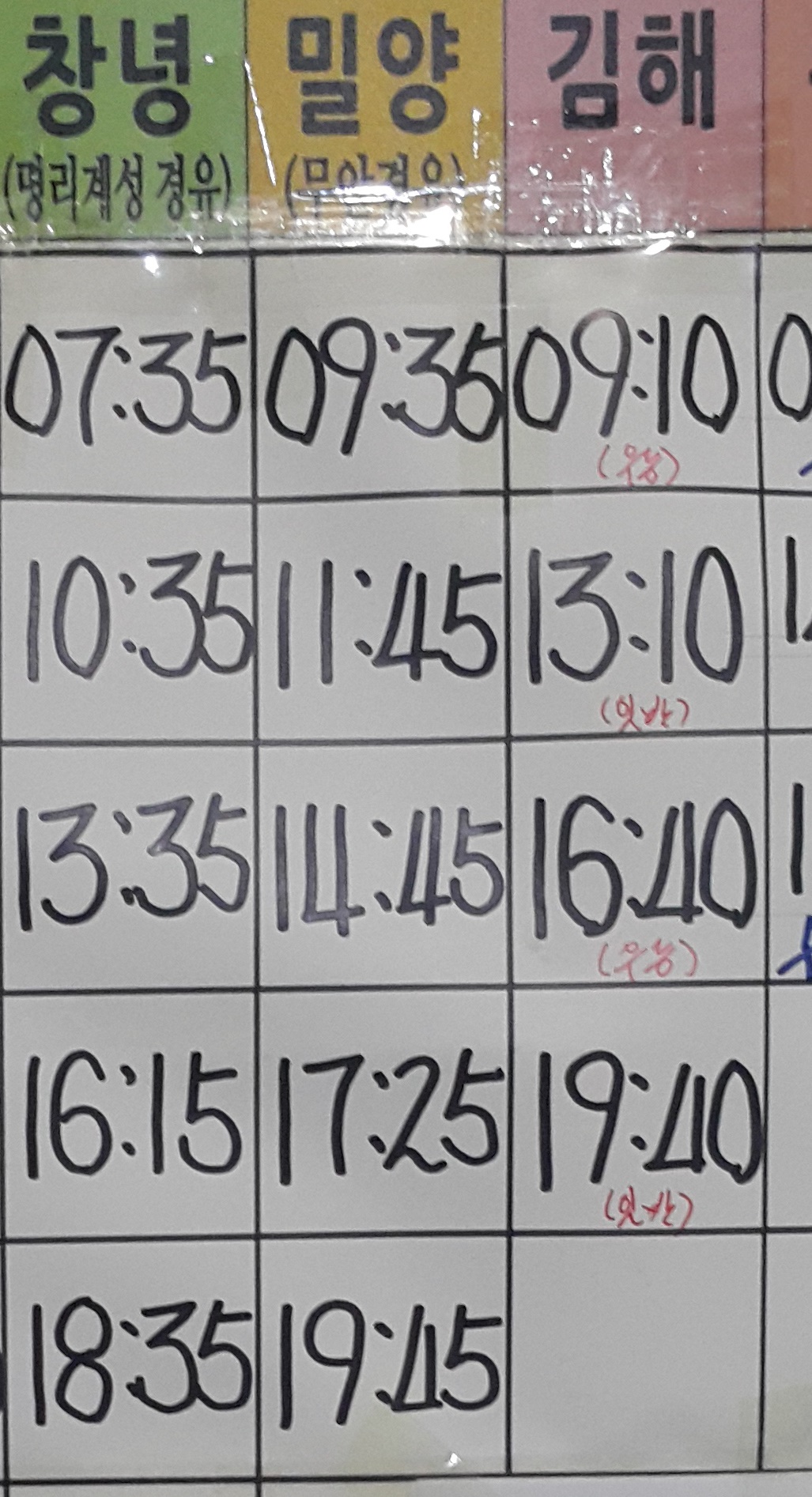 부곡 출발 창녕, 밀양, 김해 방면.