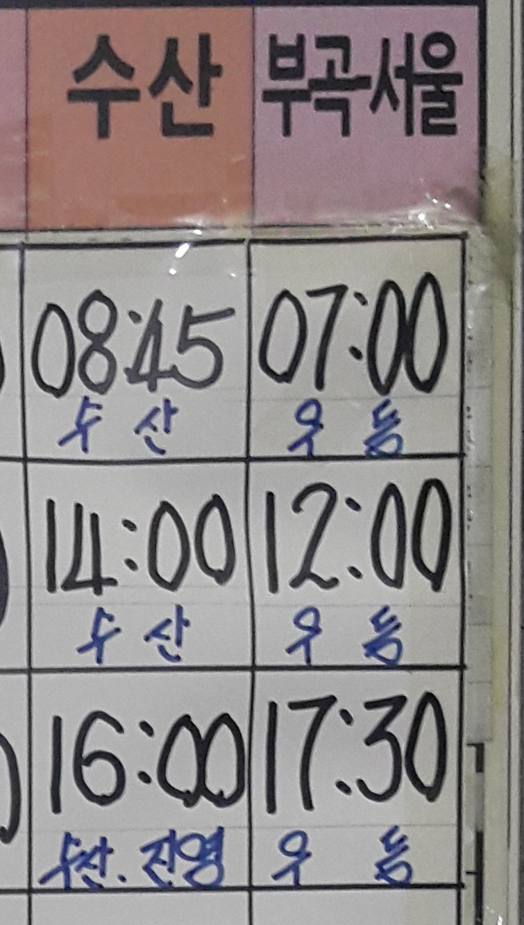 부곡시외버스터미널 시간표