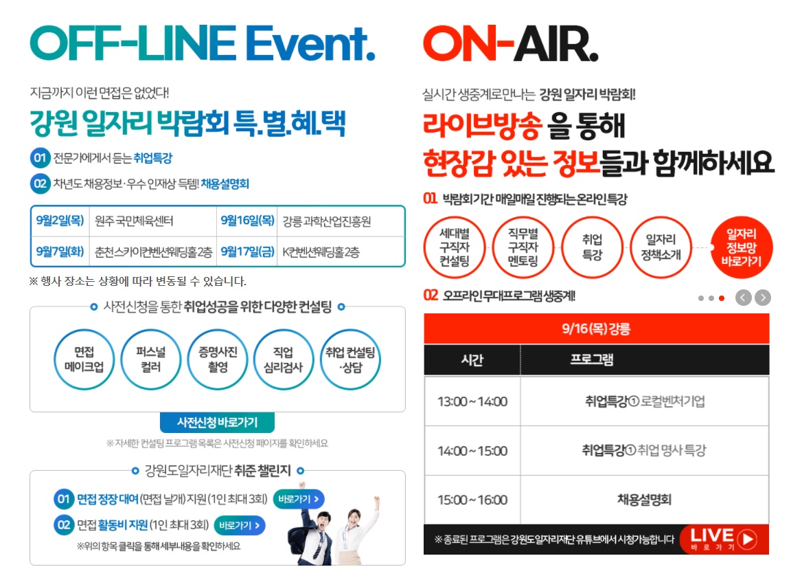 강원일자리박람회 온라인 오프라인 프로그램 안내