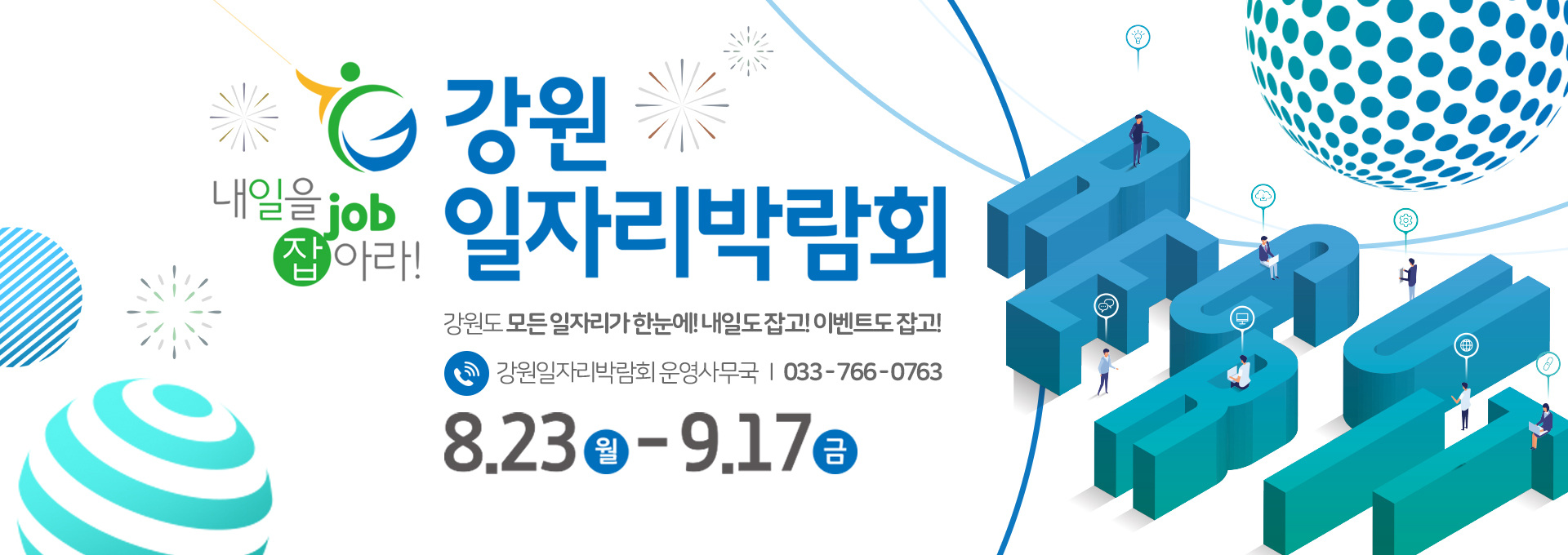 내일을 job 잡아라! 강원 일자리 박람회 강원도 모든 일자리가 한눈에! 내일도 잡고! 이벤트도 잡고! 강원일자리박람회 이벤트 페이지.