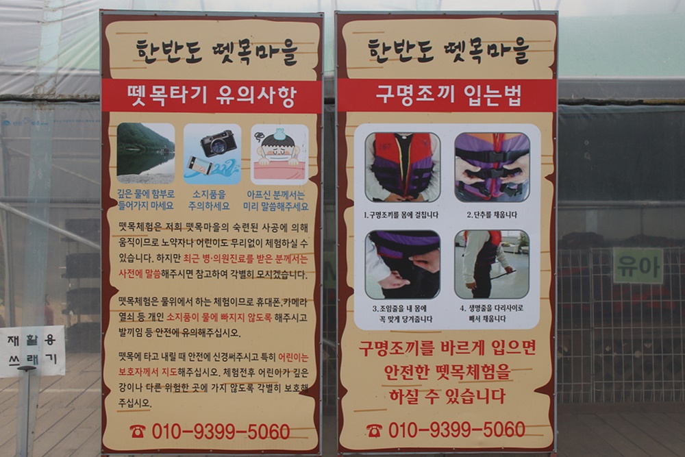 뗏목을 타기 전 휴대하고 있는 소지품이 강속으로 빠지지 않도록