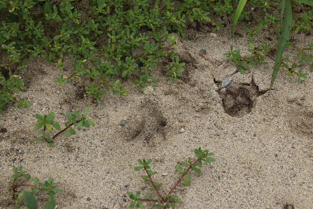 물을 마시기 위하여 강가를 찾고 있는 야생동물들의 발자국 같은데요