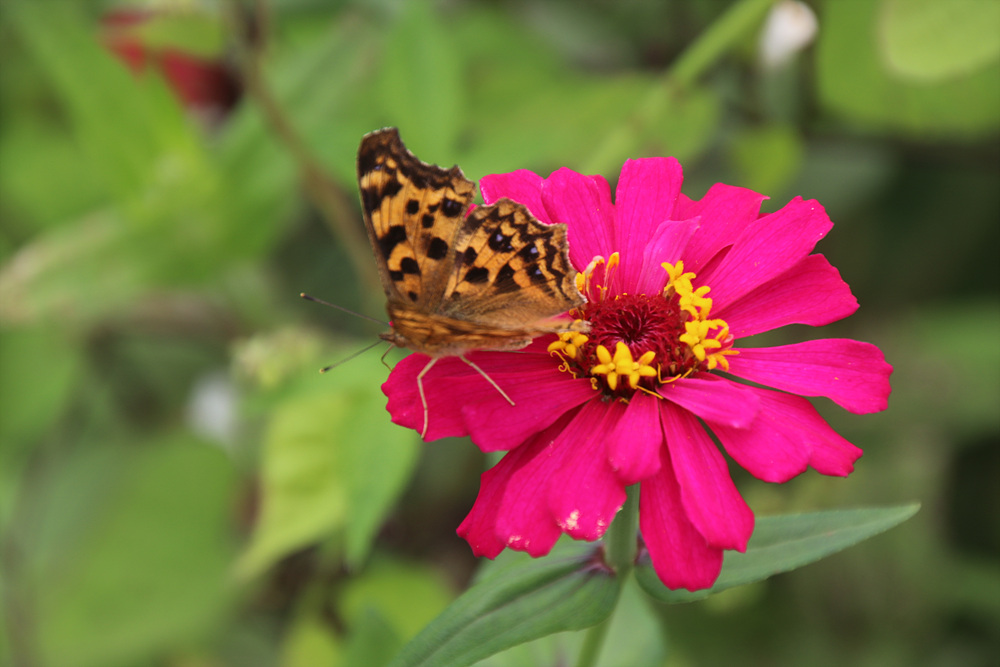 뗏목마을로 가는 길에 피어 있는 백일홍에는 호랑나비 한 마리가 앉았다가