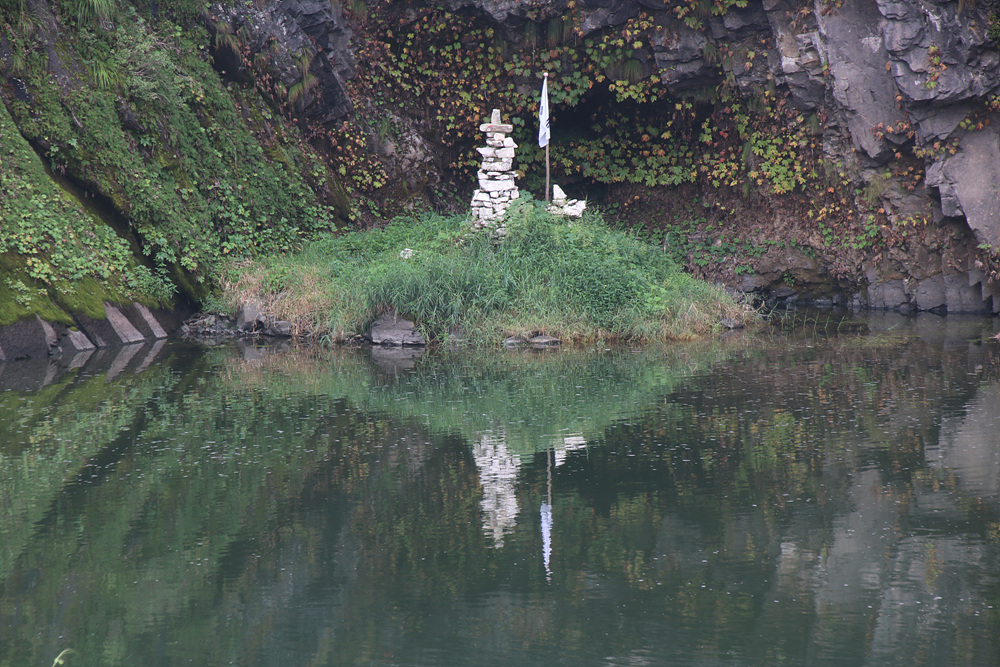 강 주변으로 돌탑을 쌓아 올려 놓았으며