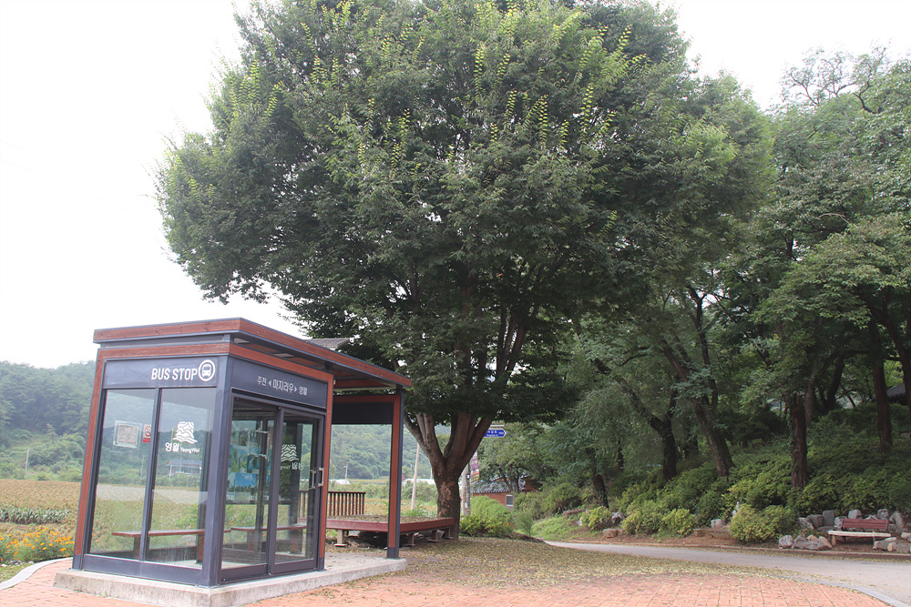 버스 정류장 옆으로는 노거수 아래 평상이 설치되어 있는데요