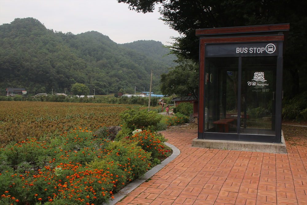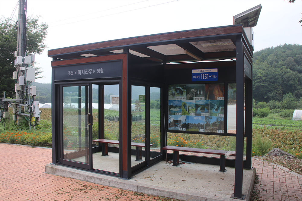 강원도 영월의 버스정류장은 첨단을 달려가고 있음을 볼 수 있습니다.