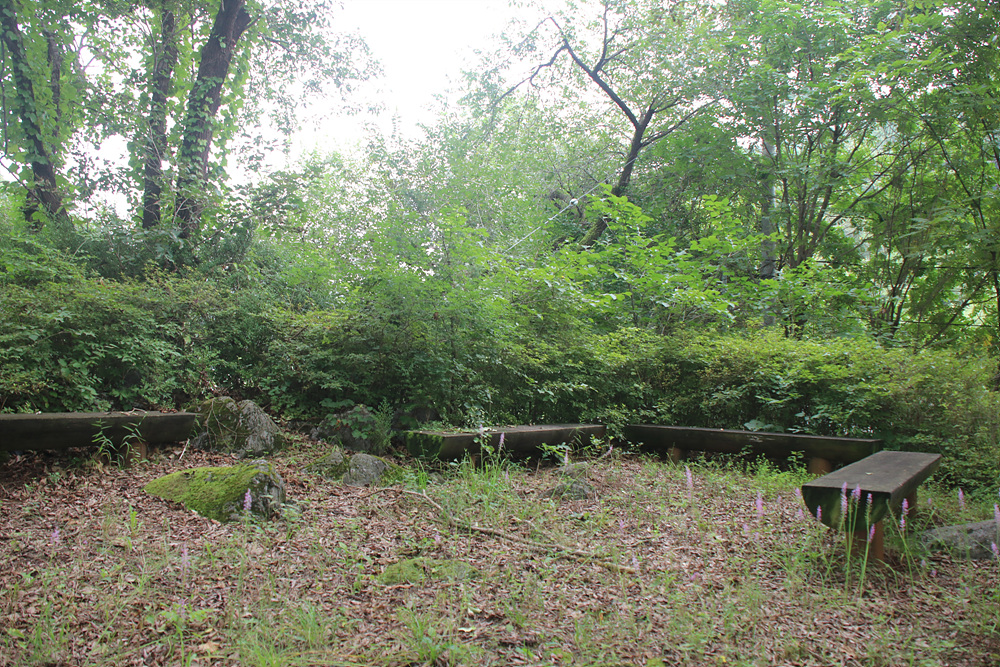 그 앞으로는 통나무 벤치가 여러 개 설치되어 있어