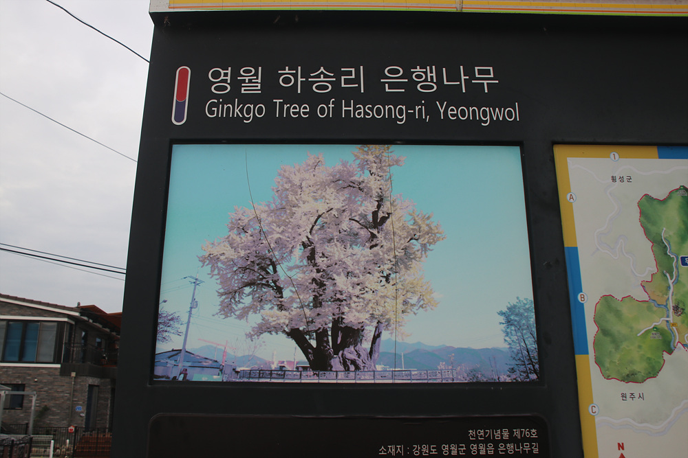 강원도 여행에서 만난 영월 천연기념물 하송리 은행나무는 높이가 23m, 가슴높이의 줄기 둘레가 14.5m,