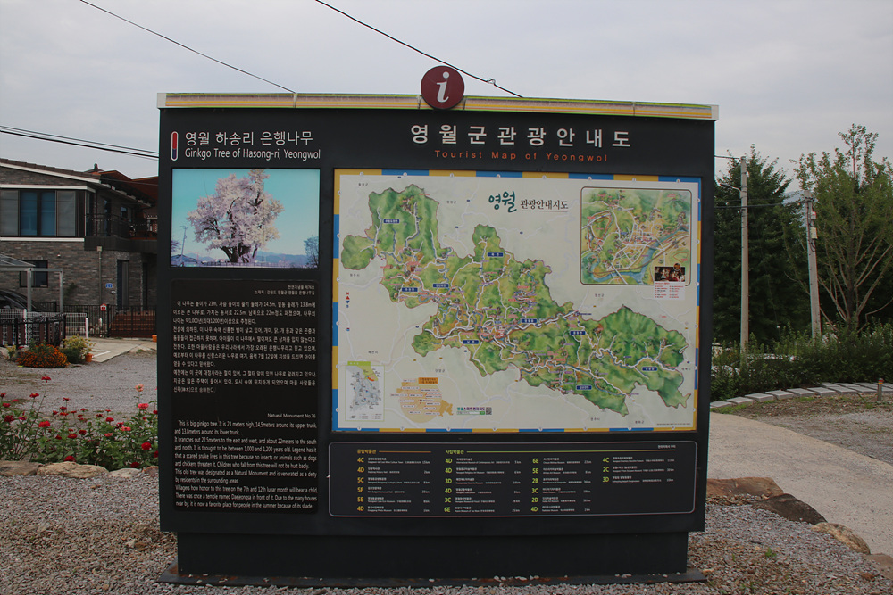 강원도 여행에서 만난 영월 천연기념물 하송리 은행나무는 높이가 23m, 가슴높이의 줄기 둘레가 14.5m,