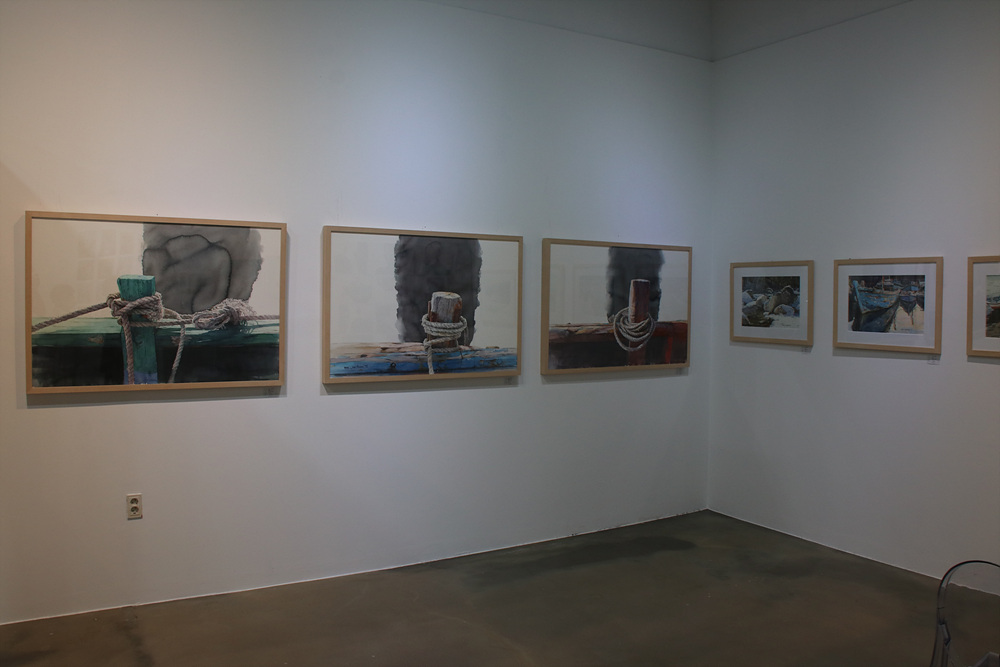 수채화로 일관되게 그녀나가 배 위에 묶인 밧줄의 형상에서 자신의 존재론적인 성찰이 이입되었음을 알게 한다.
