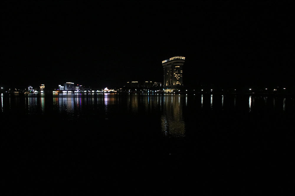 경포호수의 물위에 반사되어 더욱 멋있게 보이는 스카이베이 호텔의 모습입니다.