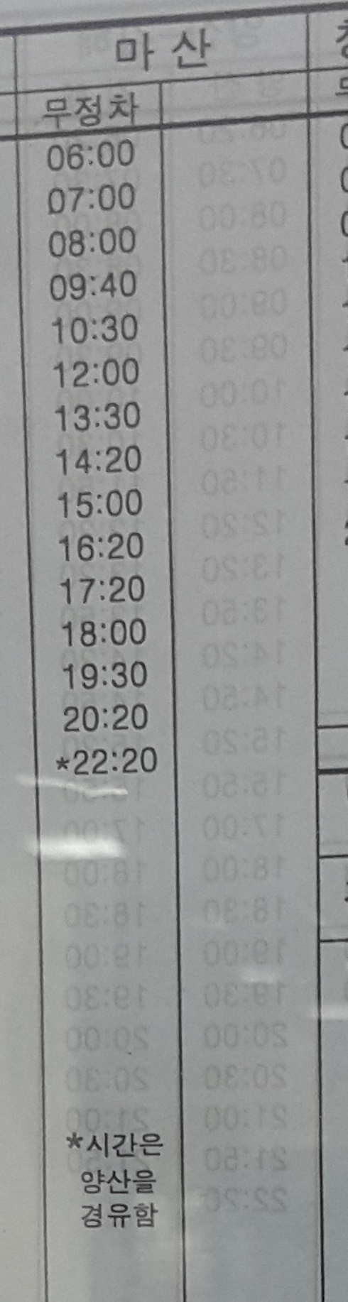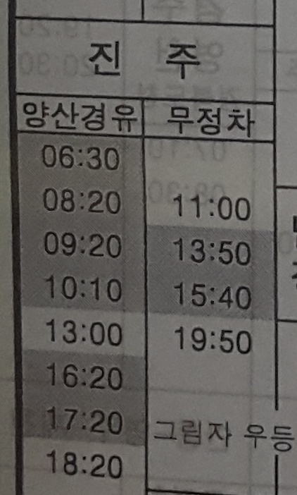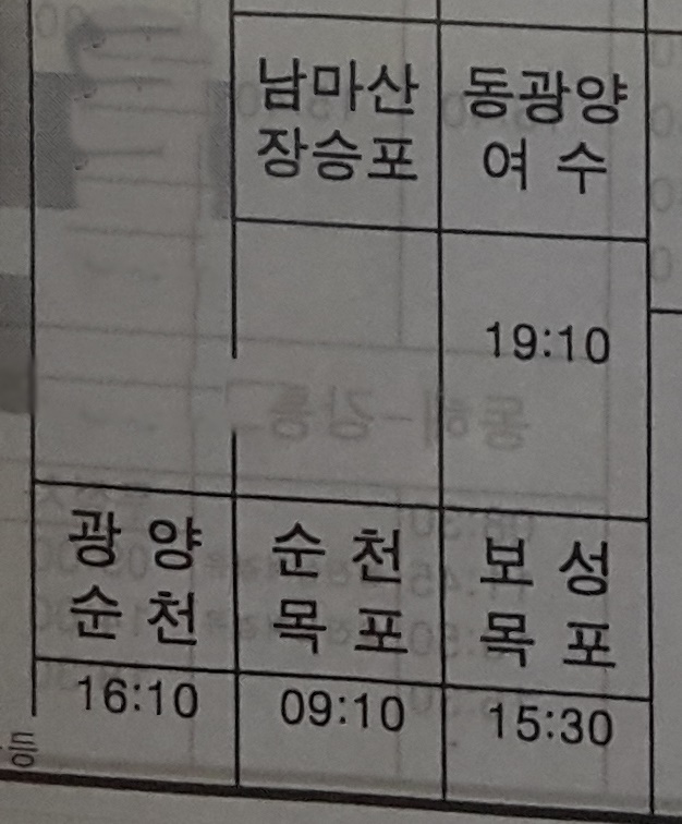 울산 출발 동광양, 여수, 광양, 순천, 목포, 보성 방면.