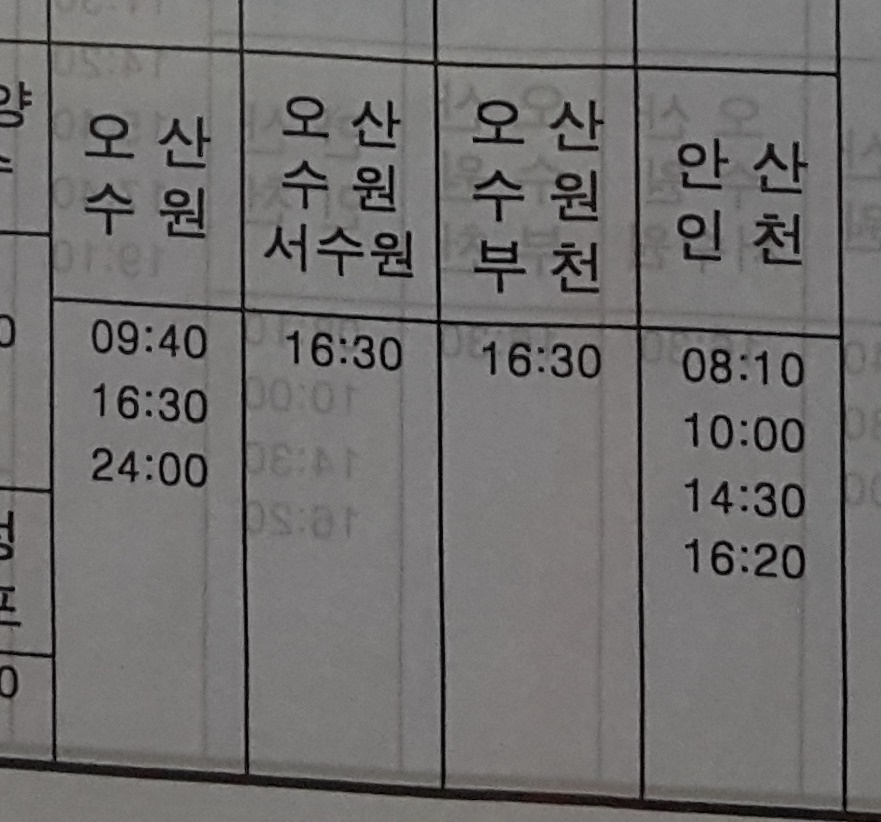 출산 출발 오산, 수원, 서수원, 부천, 인천 방면.