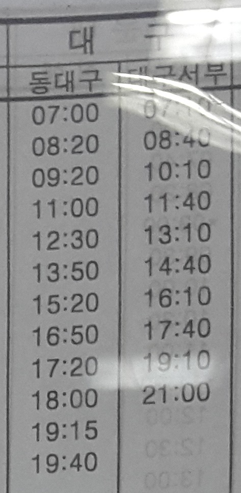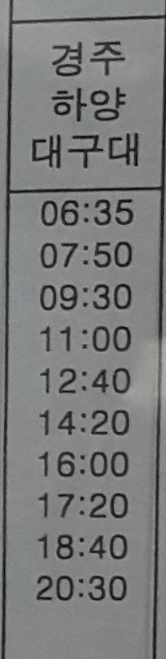 울산 출발 경주, 포항, 하양, 대구대 방면.