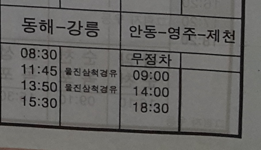 울산 출발 동해, 강릉, 안동, 영주, 제천 방면.