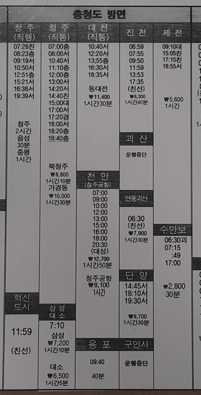 충주시외버스터미널 시간표 충주공용버스터미널