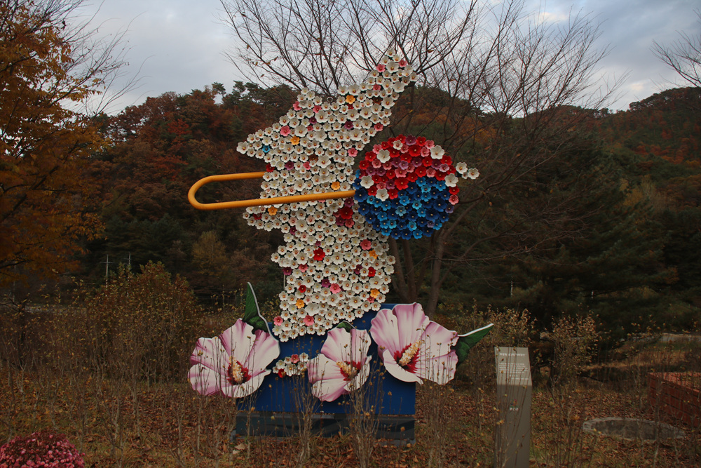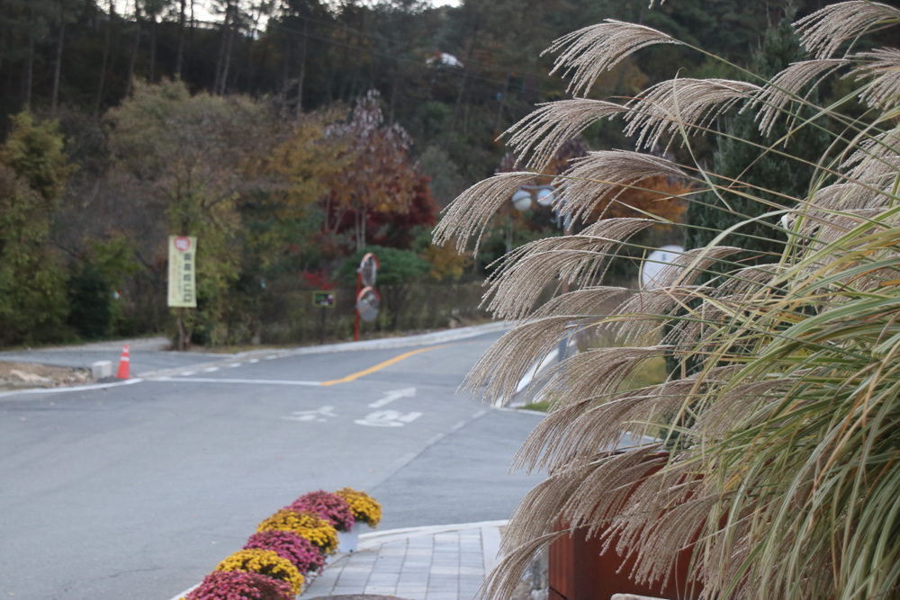 주차장으로 오르는 길은 국화를 배치하여 길을 걷는 즐거움을 더하고 있습니다.