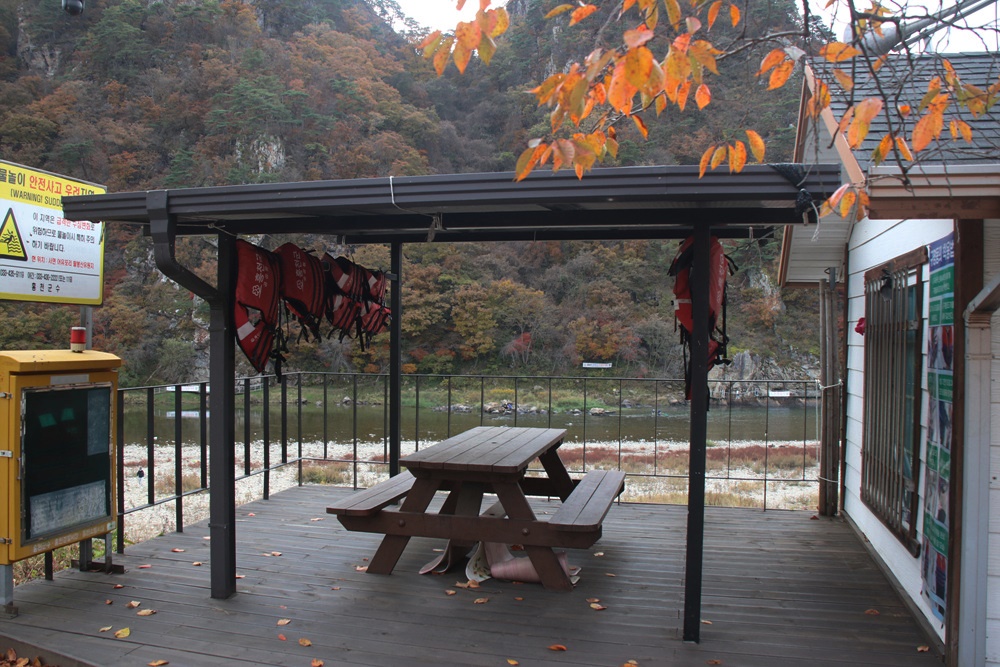 이곳 피크닉 테이블에 앉아서 보는 홍천강의 모습오 볼만합니다.