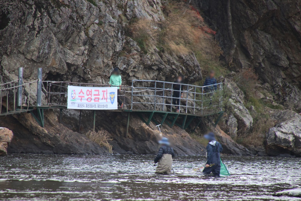 홍천강 앞은 곳에는 어린 물고기가 잔뜩 모여 있는데요