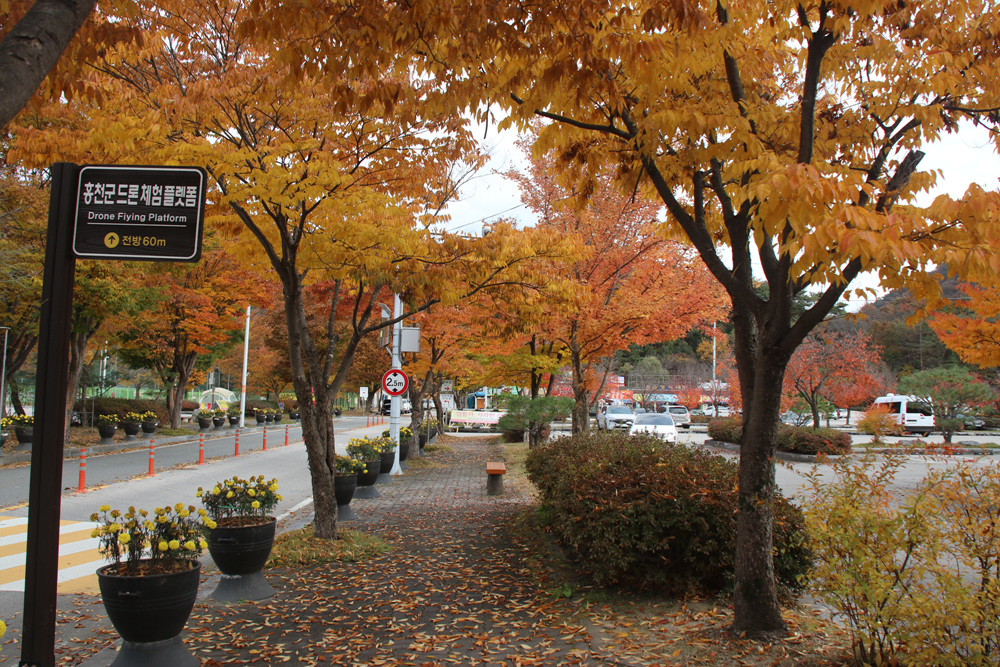 홍천강의 맑은 물소리와 함께 곱게 물든 단풍을 볼 수 있는