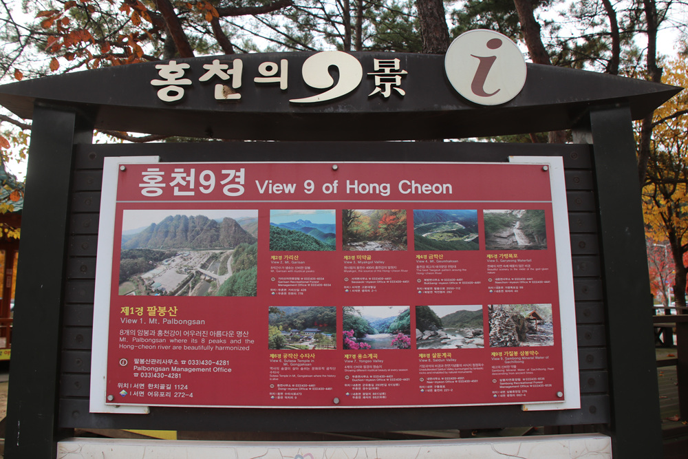 홍천의 9경을 알리는 안내판이 있는데요