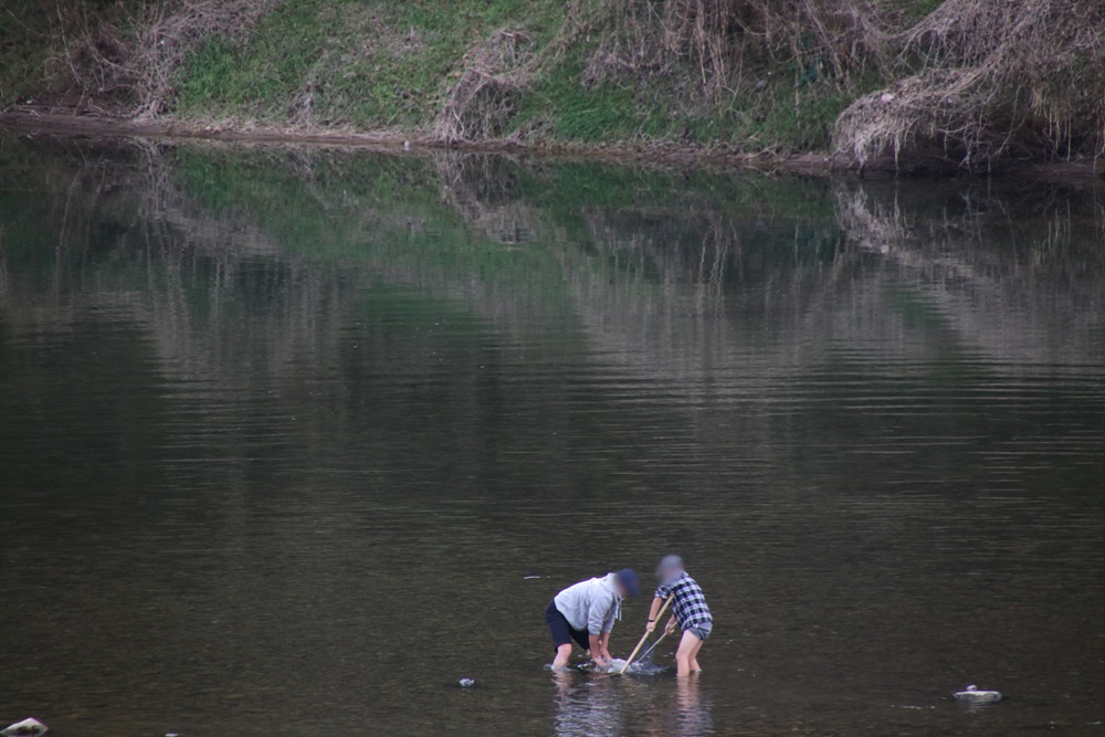 아빠와 아들이 열심이 물고기를 잡고 있는 모습인데요