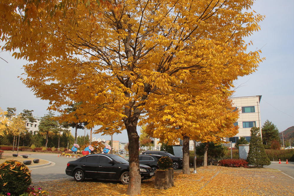 주차장부터 노란물감을 칠하여 놓은 듯 가을의 풍경을 선사하고 있는데요