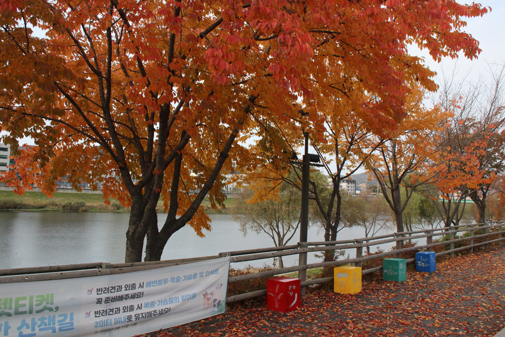 가을의 분위기를 더욱더 느끼게 하여누는 산책로와