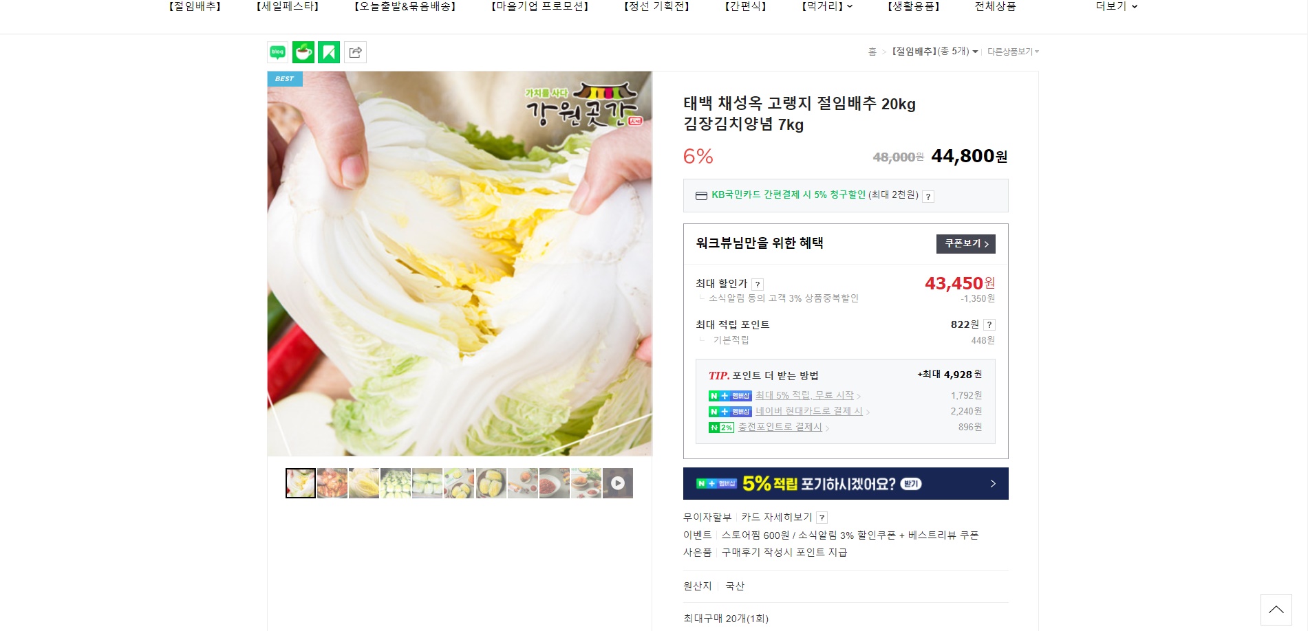 이렇게 손쉽게 할 수 있는 강원도 절임배추 기획전을 여러분도 애용 해시면 좋을 것 같습니다.