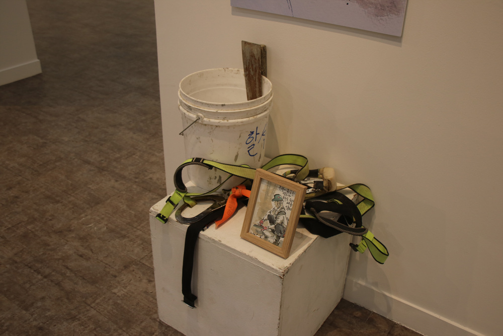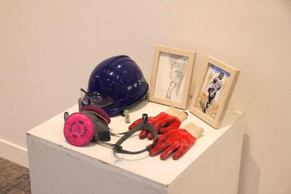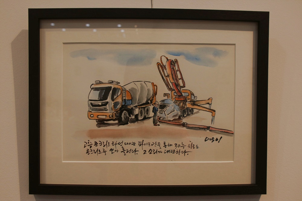 활석 미장공인 작가 이두수는 노동현장을 그림으로 고스란히 담고 있다.