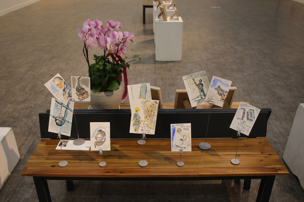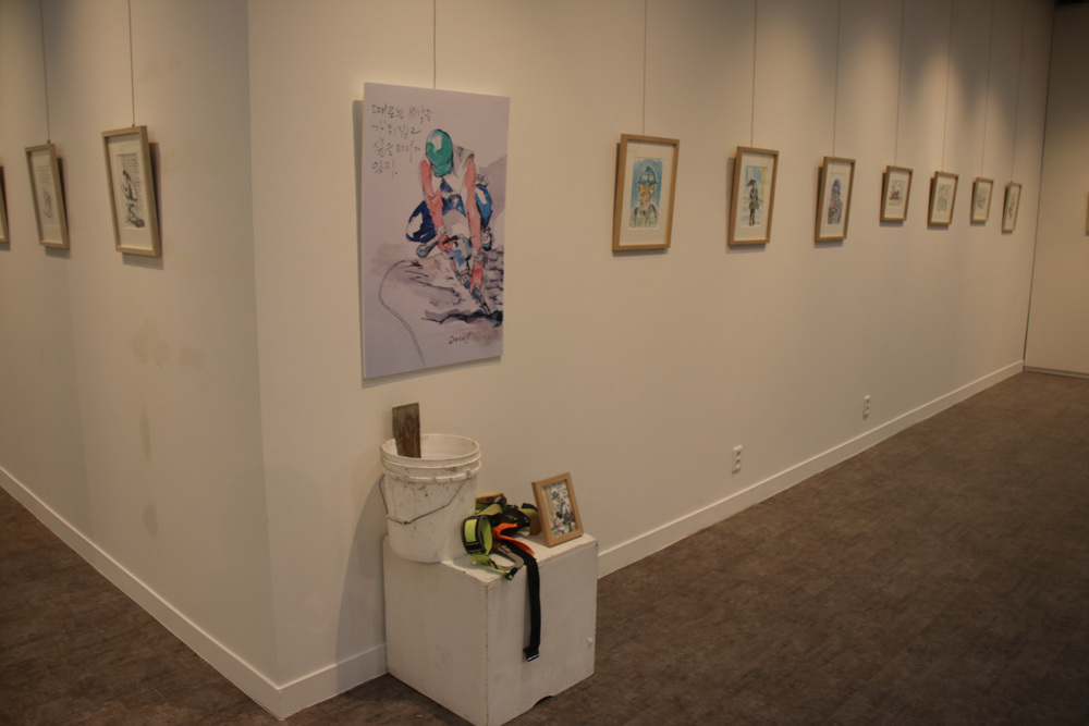 춴주 치악예술관 전시실 노동자의 그림들이 많은 호응을 얻고 있다.