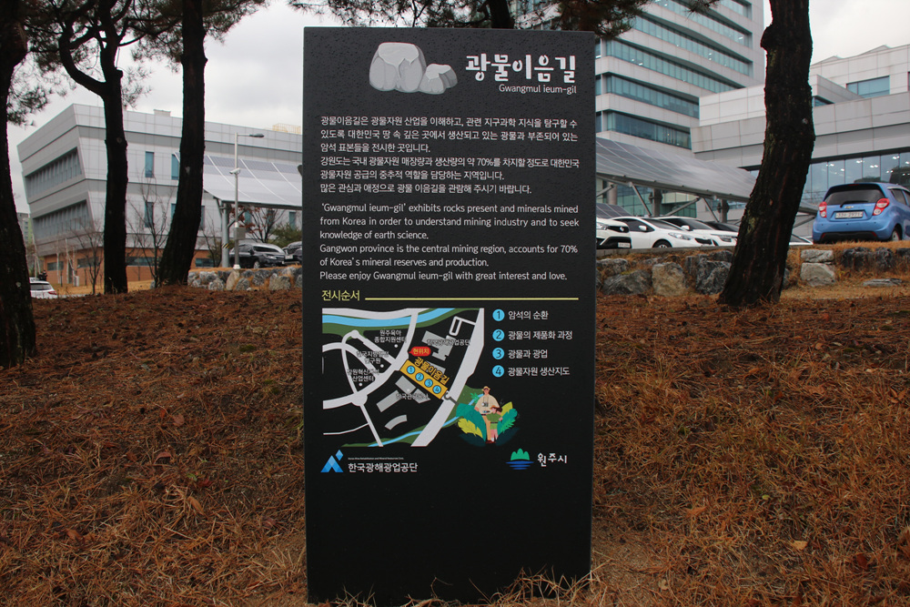 이 거리는 광물이음길이라 불리며 우리나라이 광물이 매장이 되어 있음을 널리 알리고 있습니다.