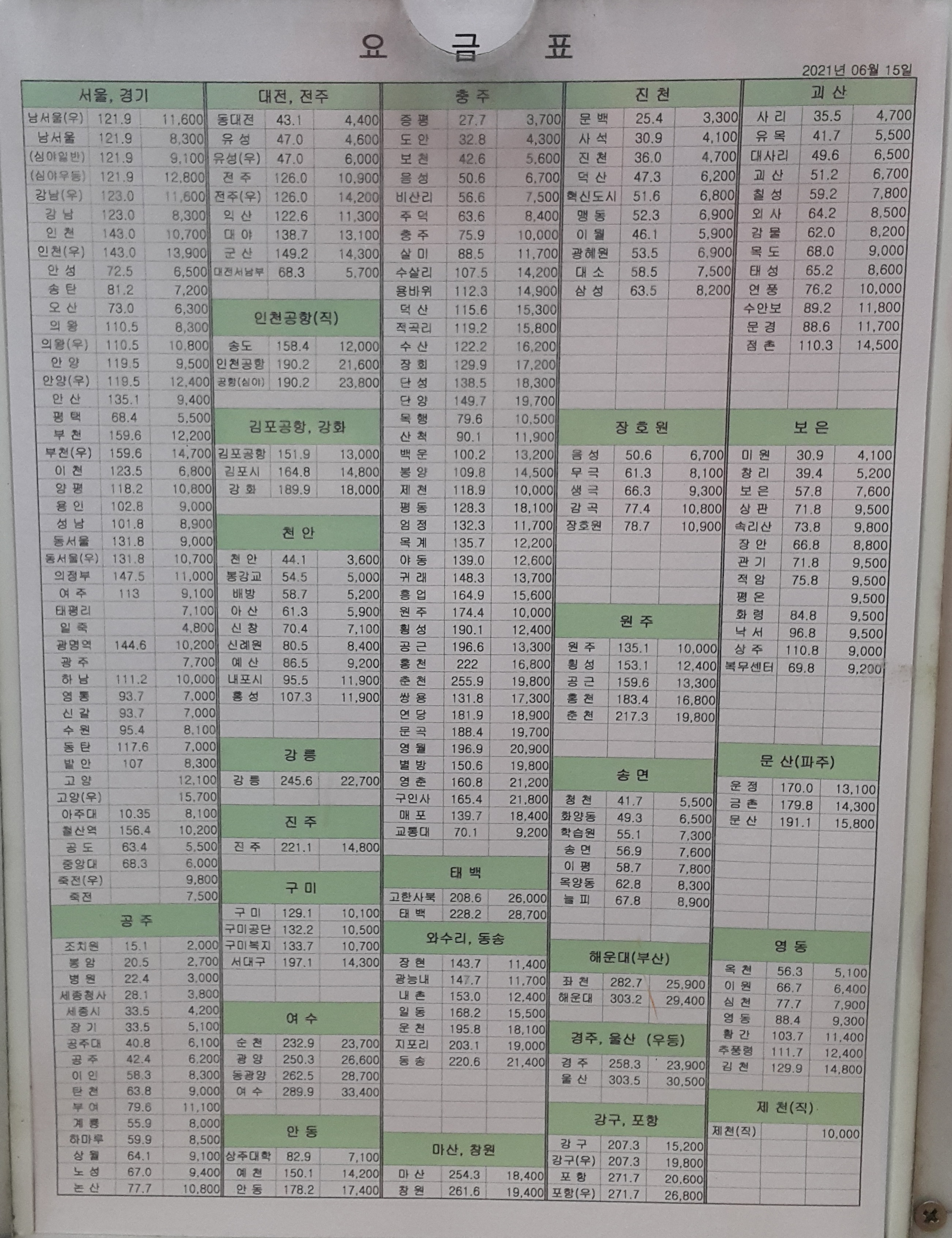 청주시외버스터미널 출발 부천, 천안, 공주, 동송, 강릉, 원주, 태백, 대전 방면.