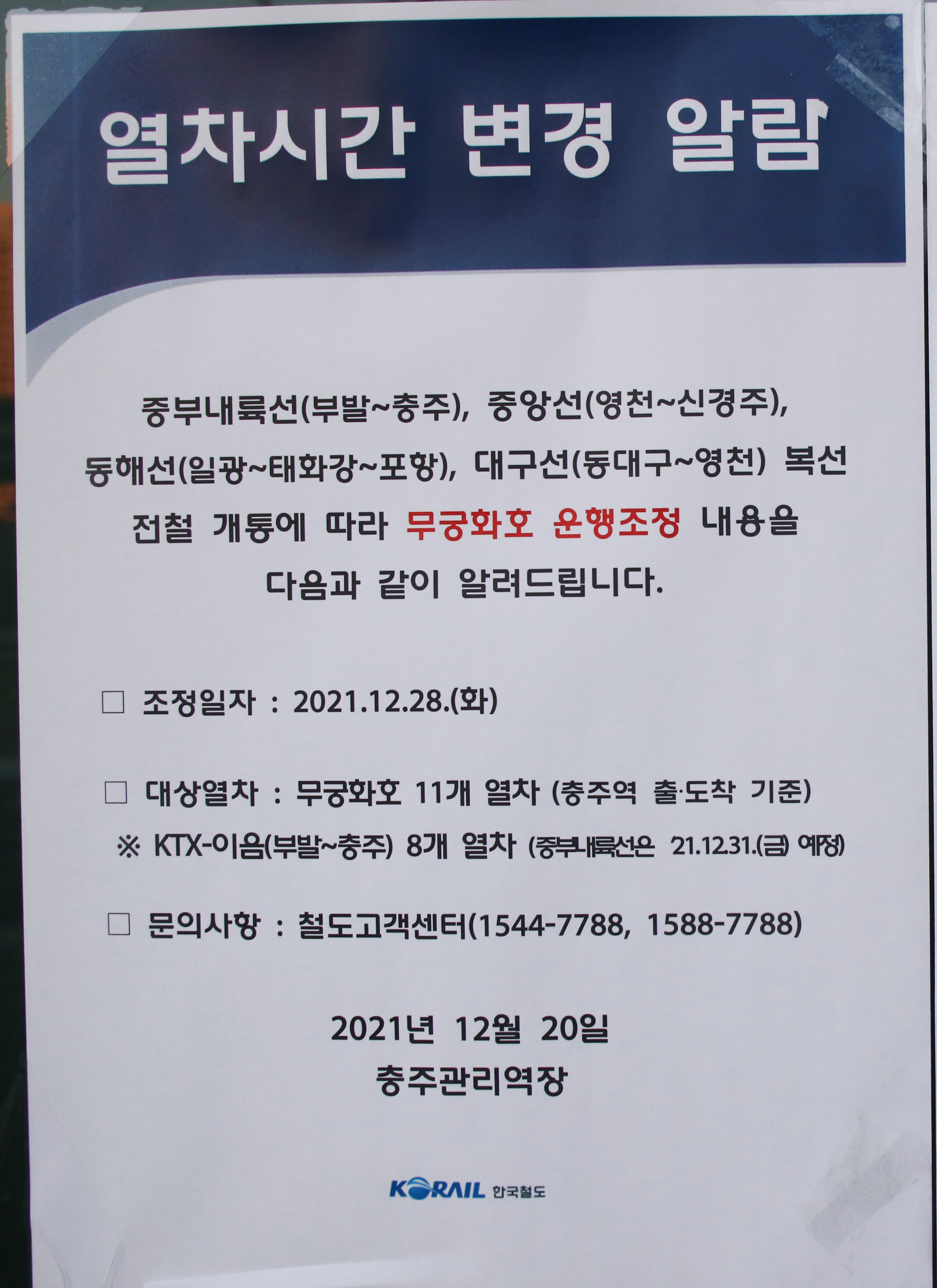 무궁화호 운행 조정됩니다.