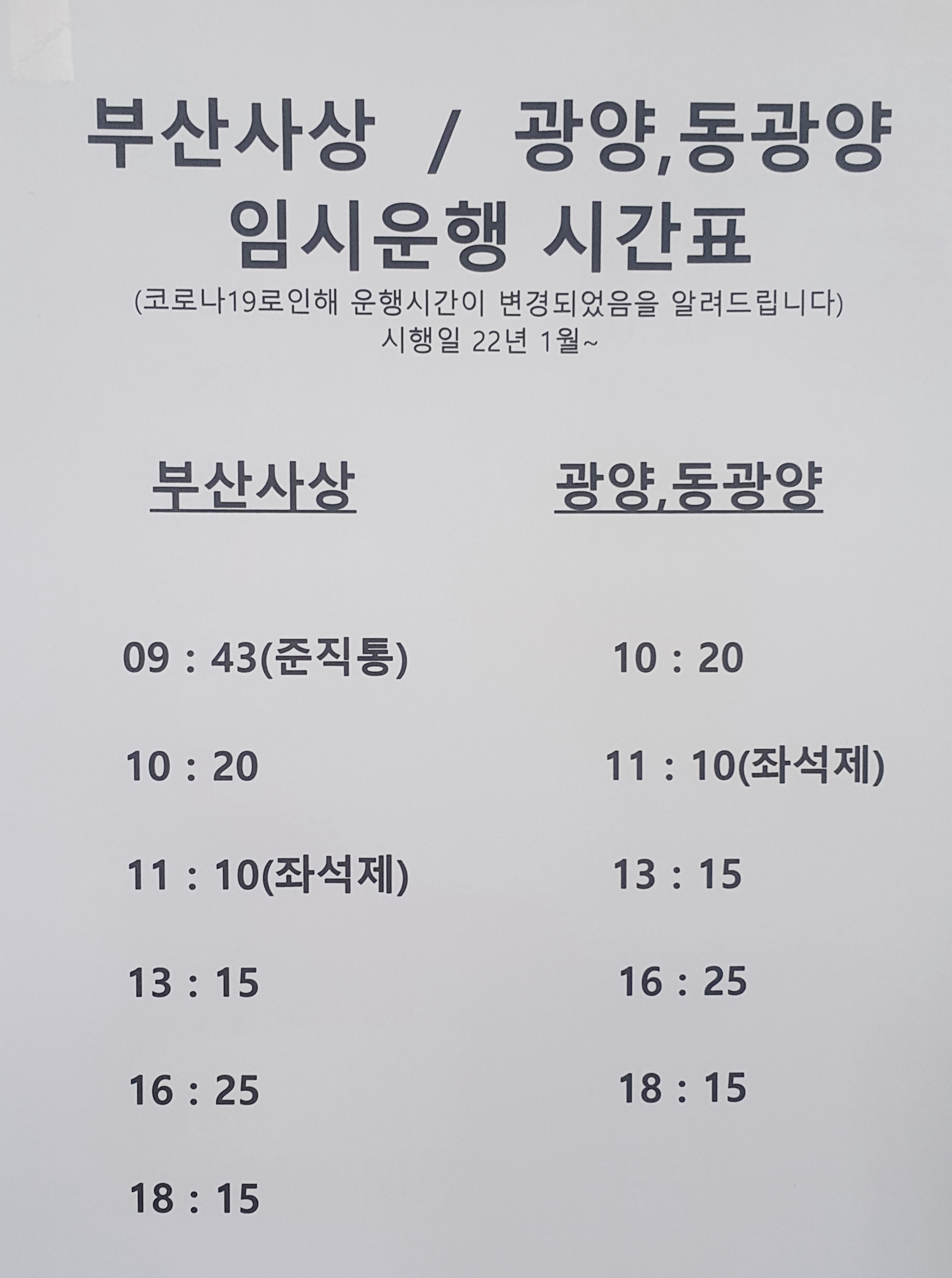 벌교 출발 부산 사상, 광양, 동광양 중마, 방면.
