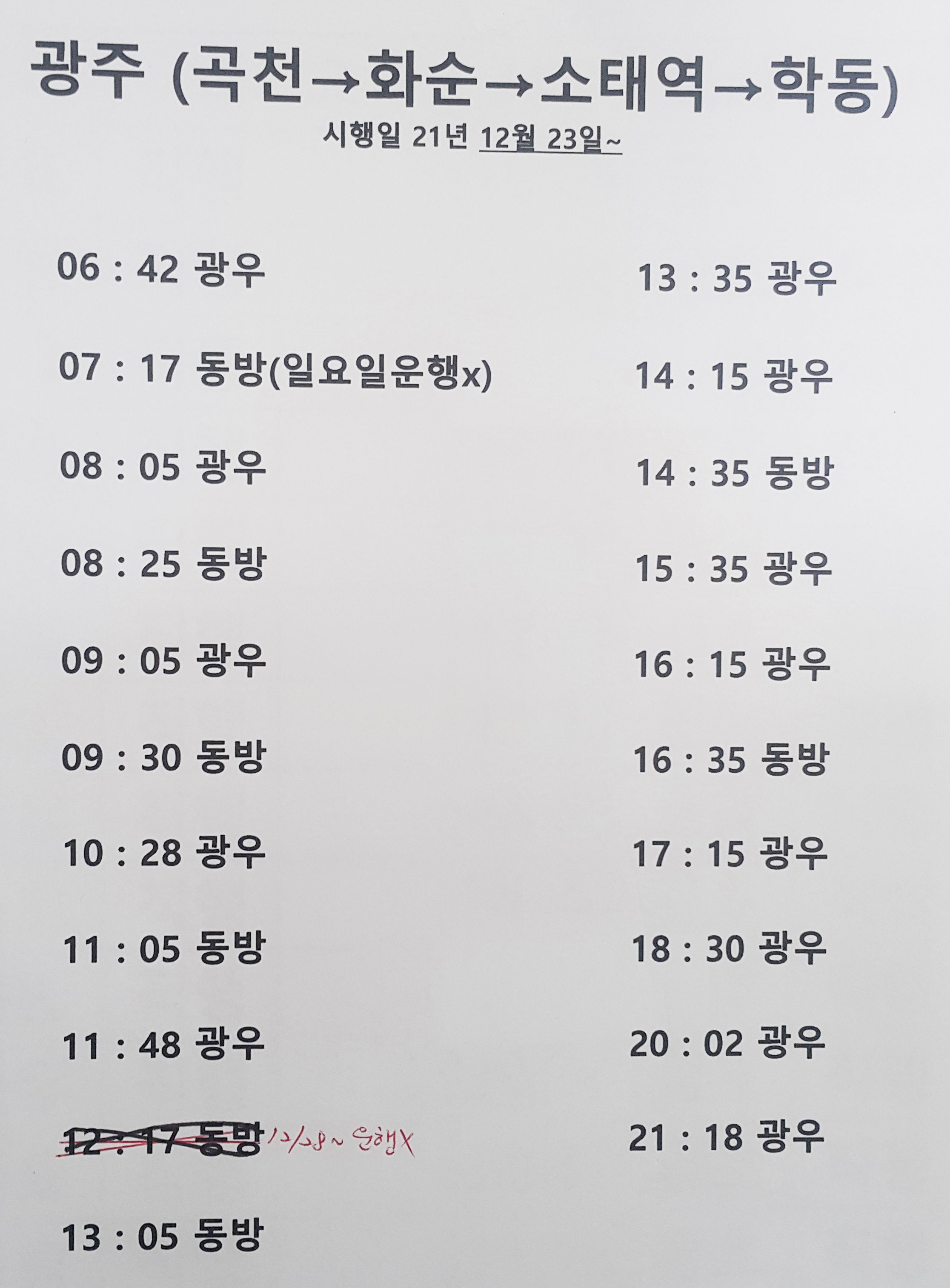 벌교 출발 광주, 곡천, 화순, 소태역, 학동 방면.