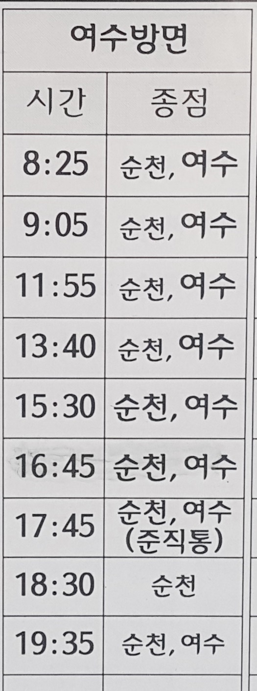 보성 출발 순천, 광양, 동광양, 부산 방면.