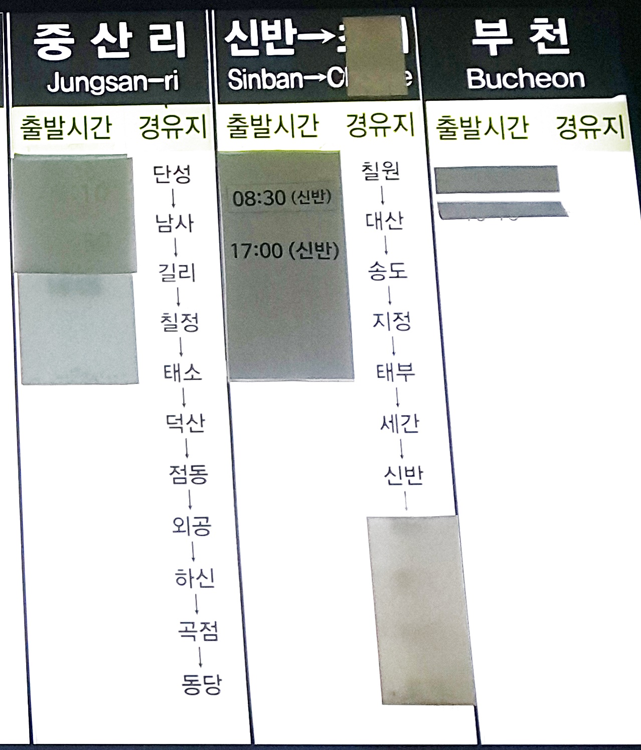 중산리, 부천 운행중단되었음.