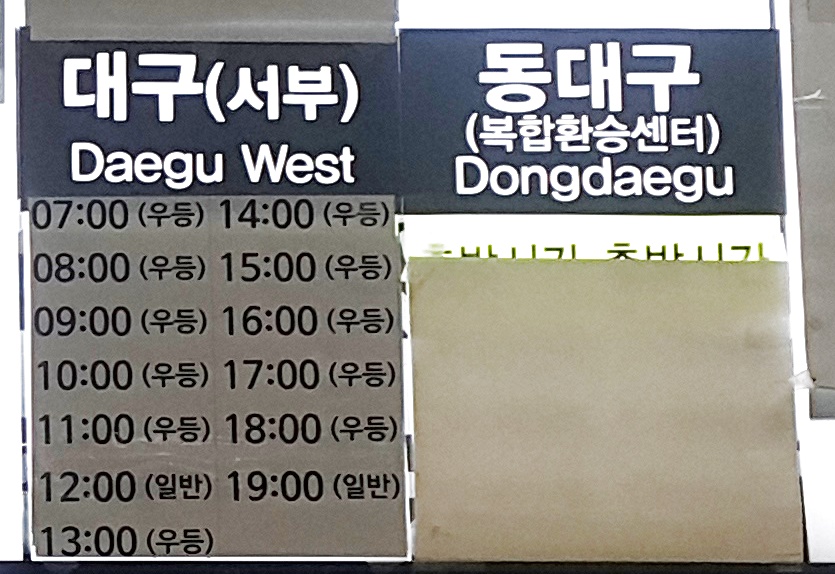 부산 사상 출발 대구 서부, 동대구 방면.