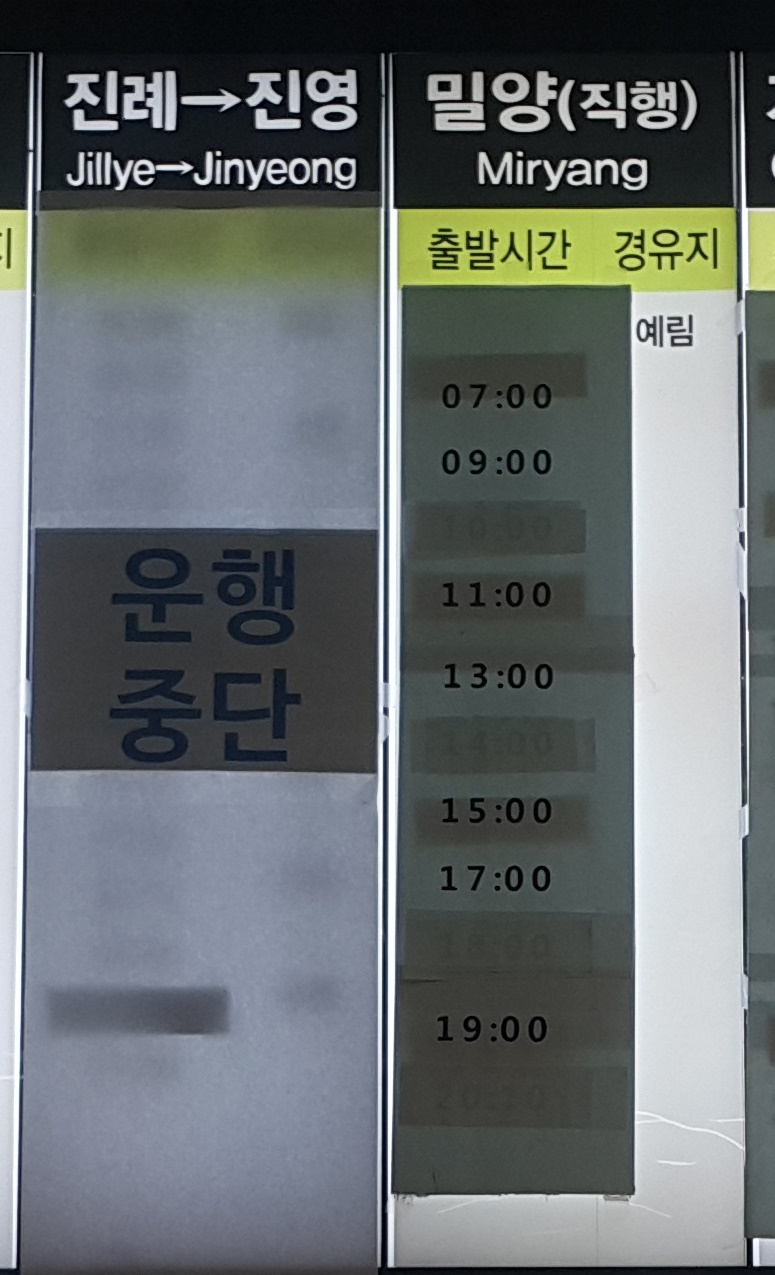 김해는 운행중단되었음.