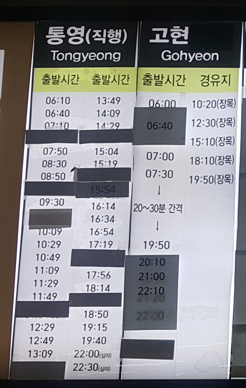 부산 사상 출발 남마산, 고성, 대원사 방면.