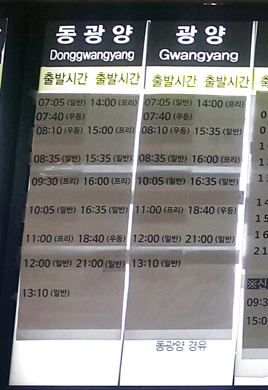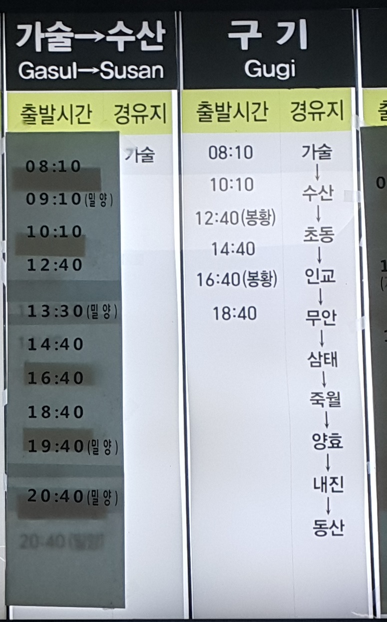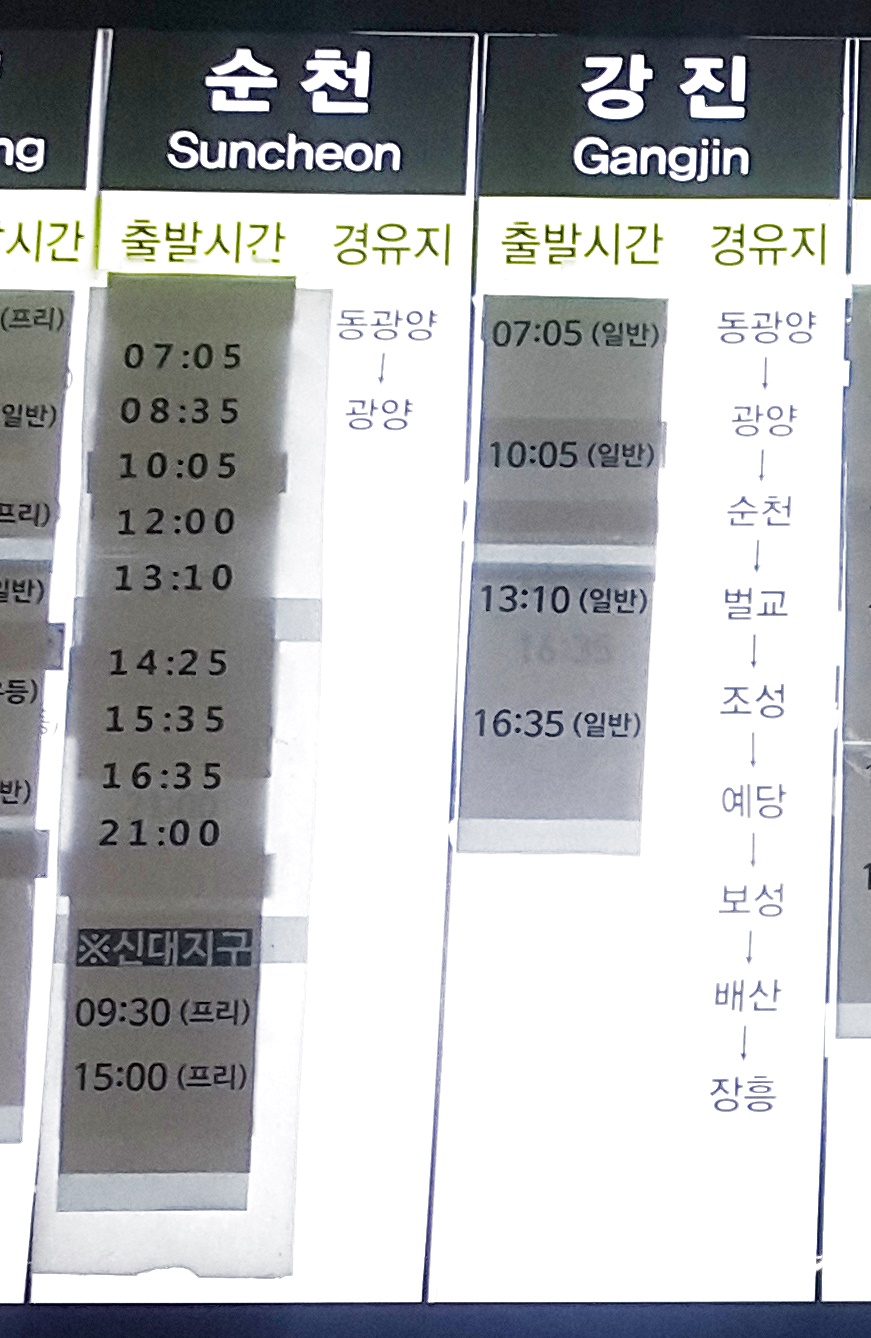 부산 사상 출발 동광양, 광양 방면.