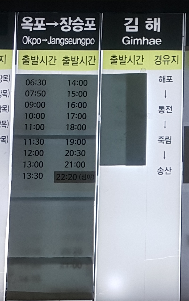 부산 사상 출발 옥포, 장승포, 김해 방면.