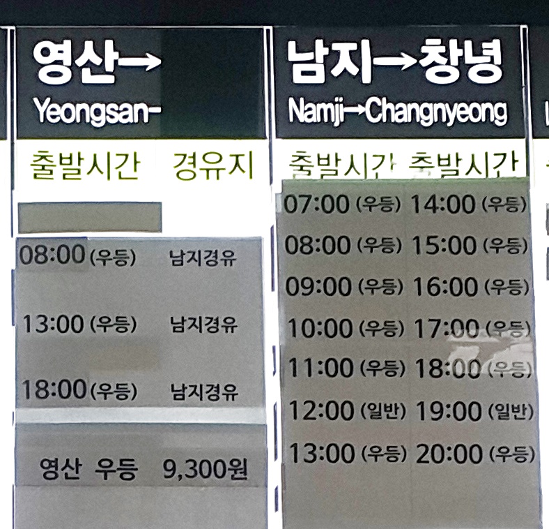 부산 사상 출발 영산, 남지, 창녕 방면.